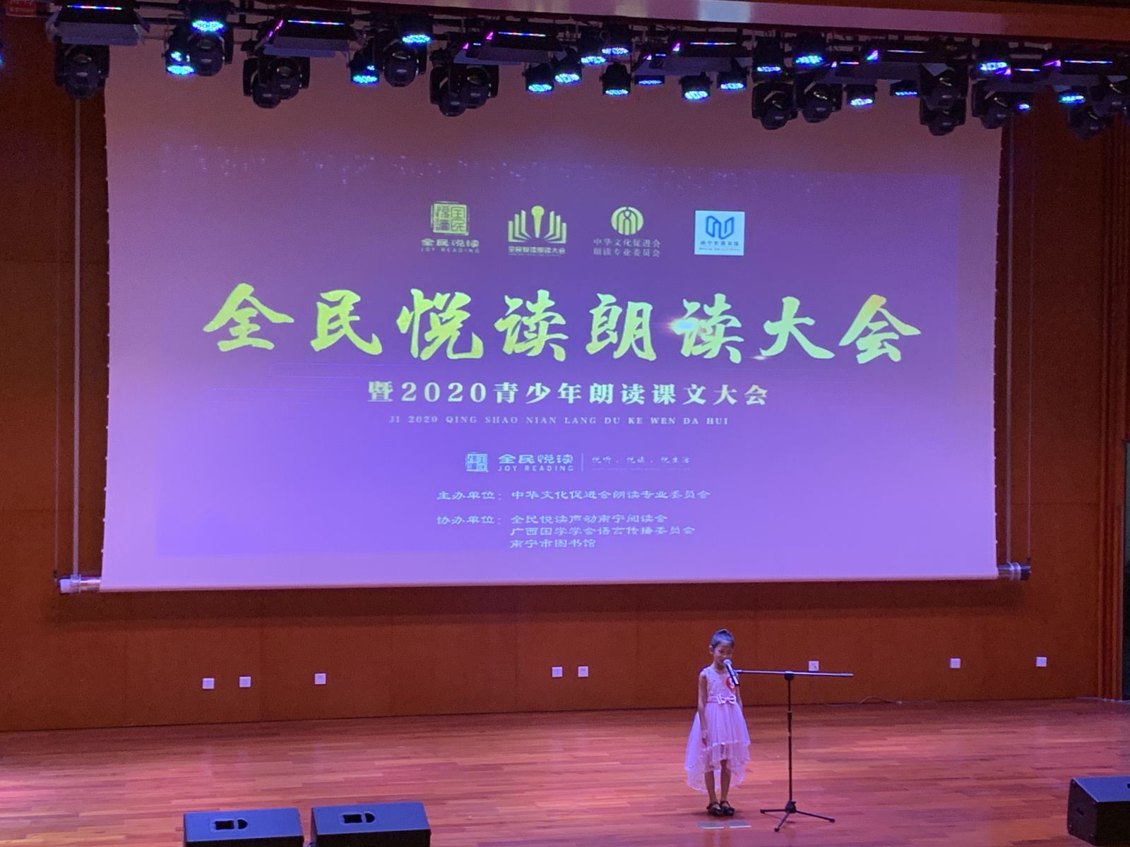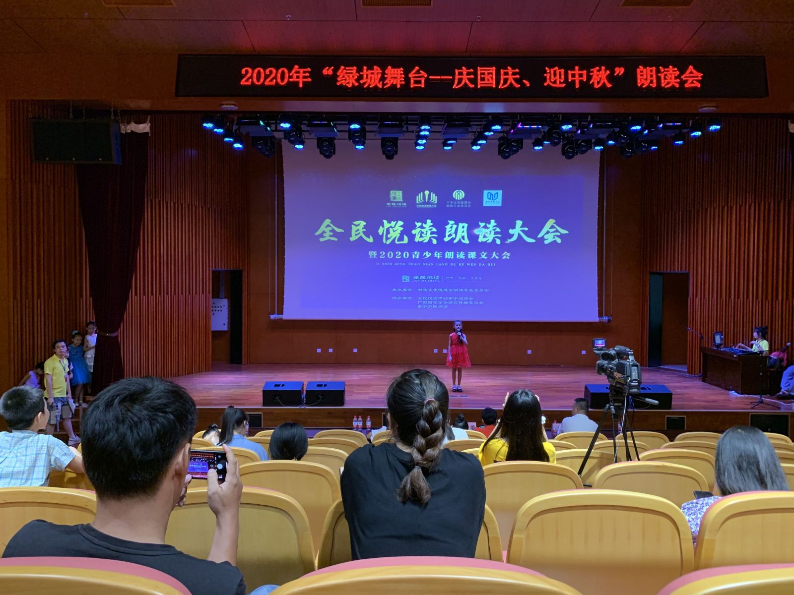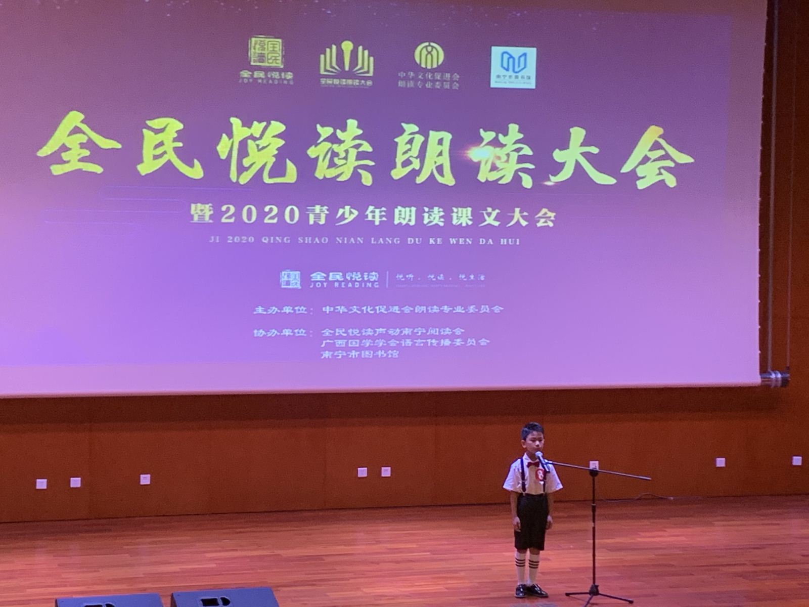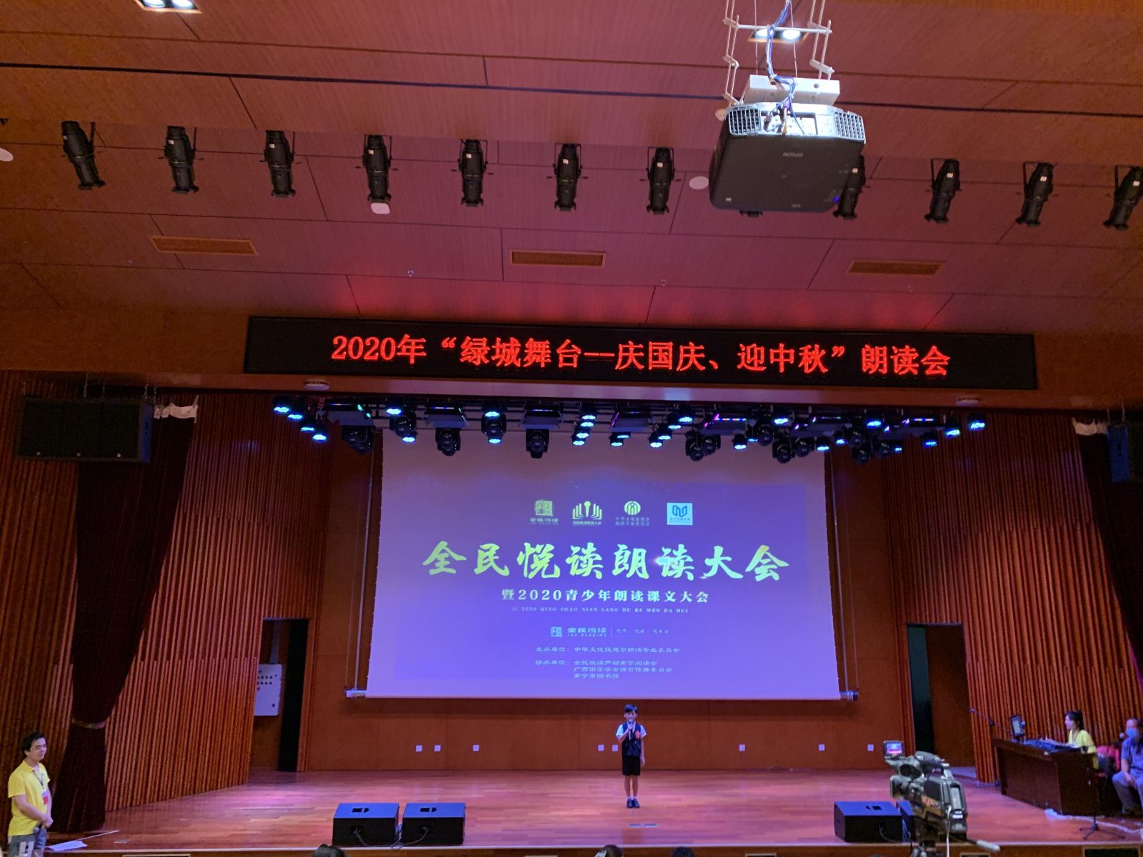 在南宁市创建文明城市期间,为响应南宁市精神文明建设委员办公室倡导的“阅读与人生相伴 文明与城市同行”精神,南宁市图书馆积极建设书香南宁,营造浓郁的读书氛围,在第23届全国推广普通话宣传周期间开展形式多样的宣传推广普通话活动,培养绿城青少年语言表达能力和朗读水平,激发广大朗读爱好者的兴趣和热情,迎接2020年国庆节与中秋节双节共庆的到来,特别在9月12日举办了“绿城舞台——庆国庆,迎中秋”朗读会。