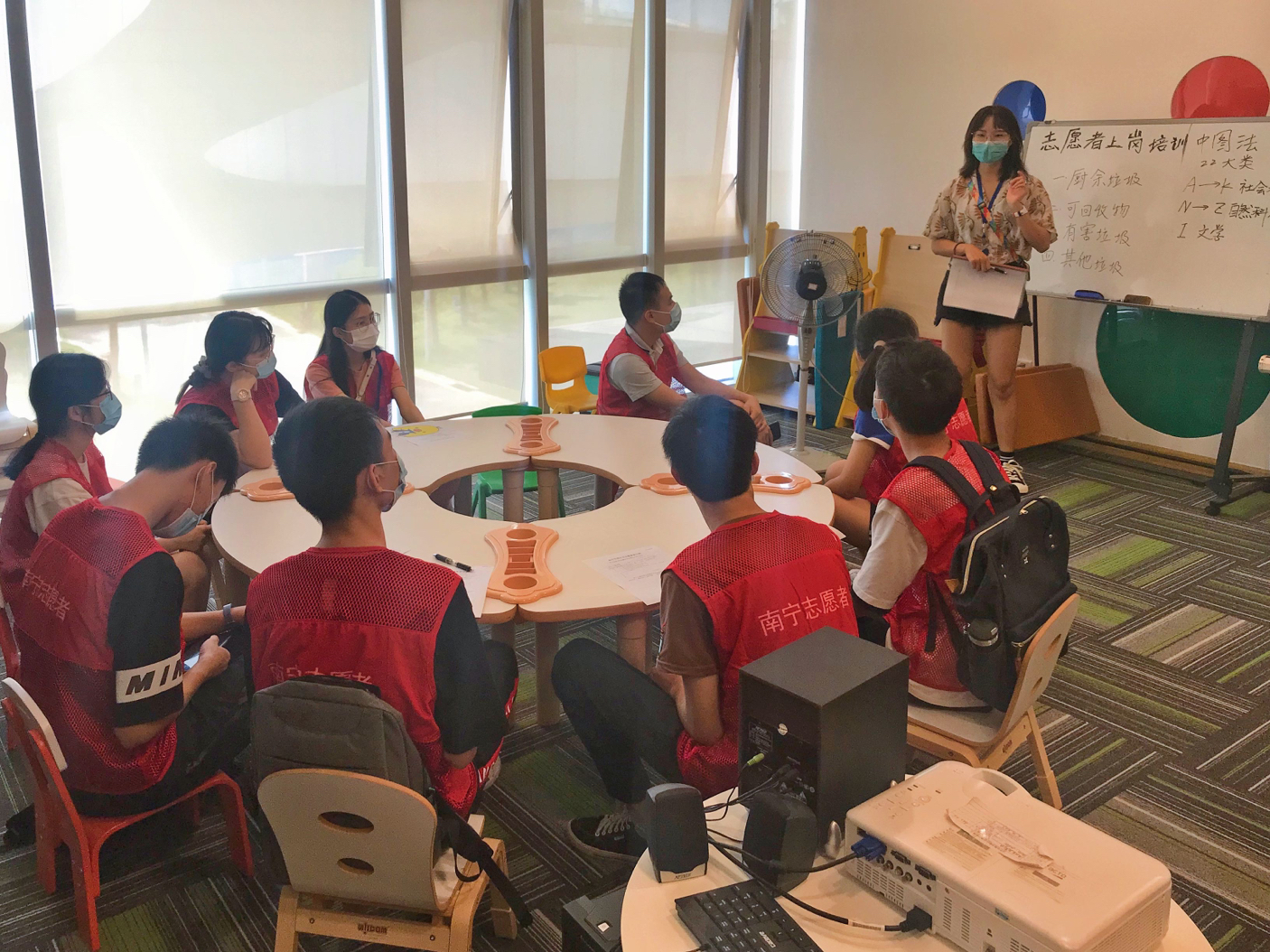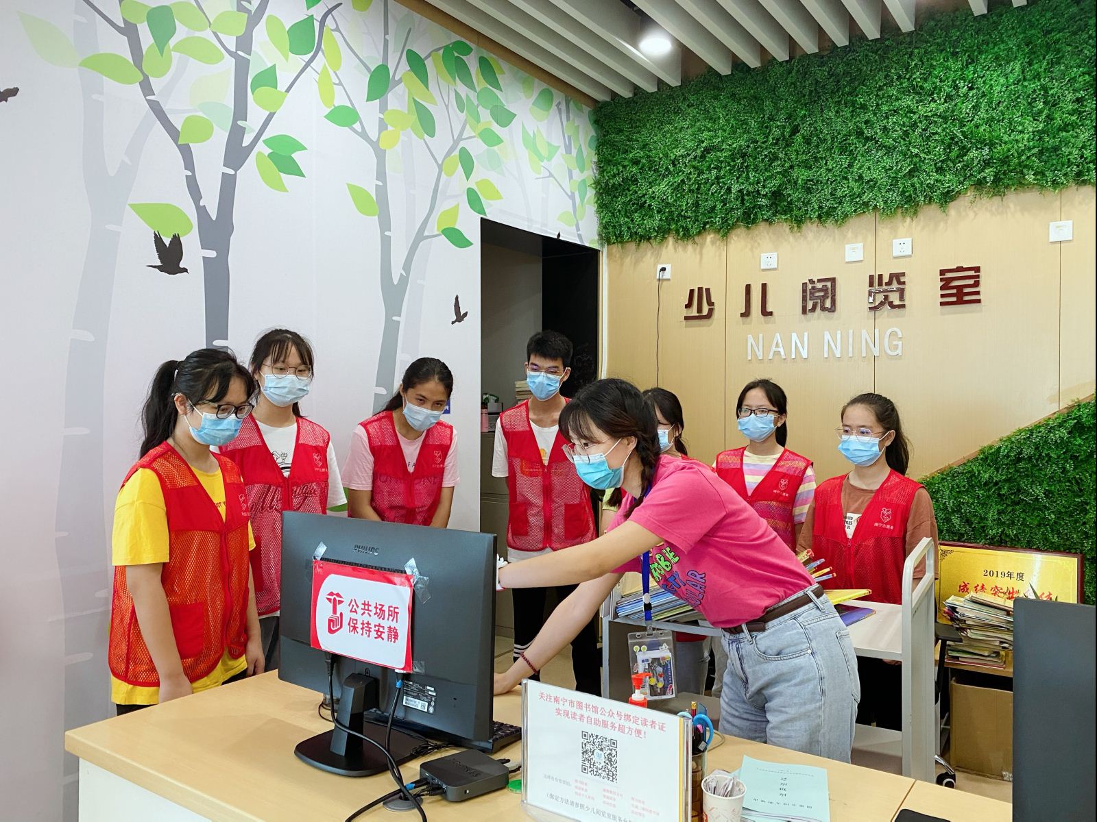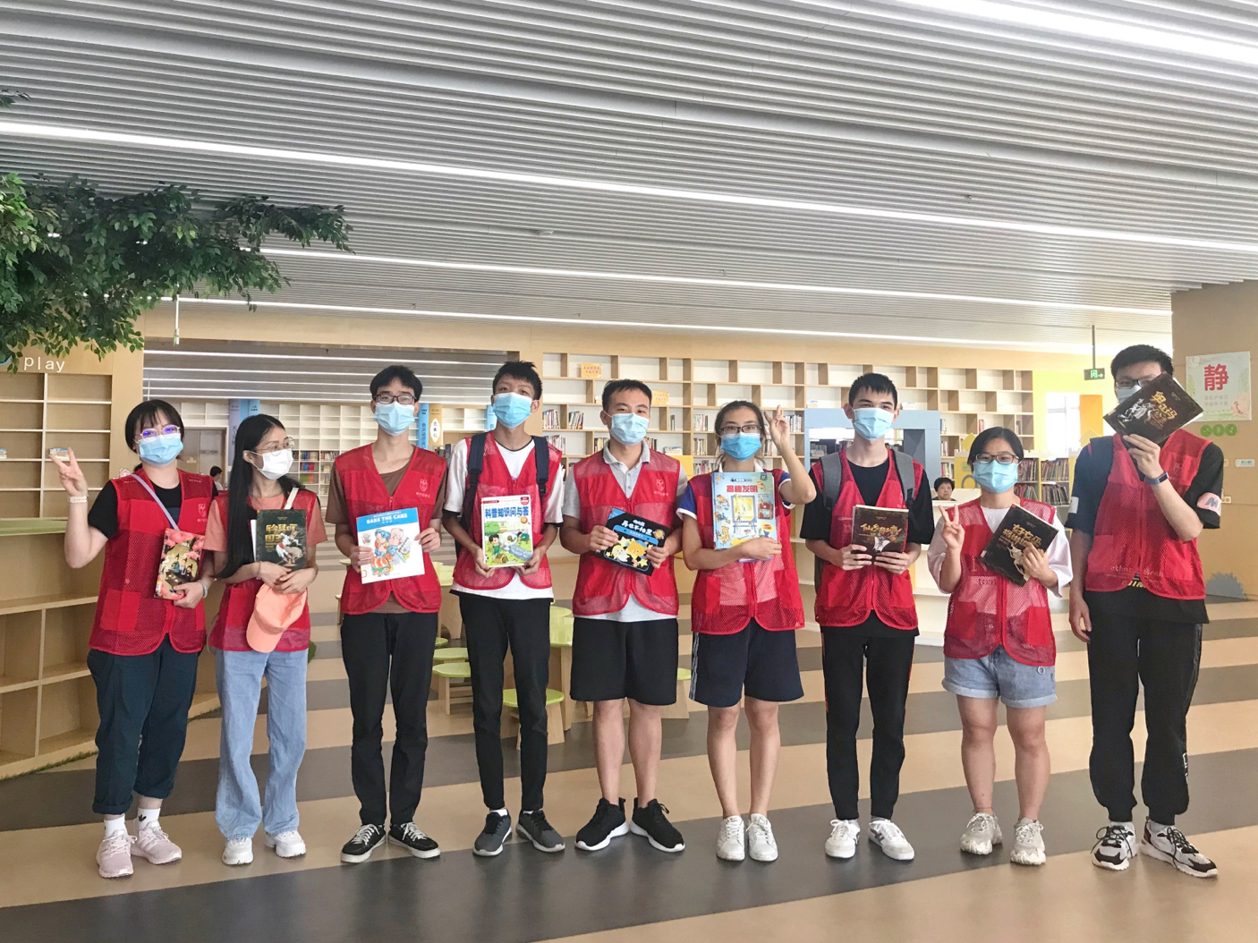 2020年暑假期间,在南宁市图书馆的各个阅览区域,穿着红色马甲的南宁市图书馆文化志愿服务队的志愿者们成为一道亮眼的风景线。他们穿行在书架之间,协助图书馆工作人员为读者导引索书、整理书籍、解答来馆读者的咨询、为残障读者服务,更作为文明引导员向读者宣导垃圾分类知识、引导读者养成文明阅读的习惯,用自己的绵薄之力,助力全国文明城市创建,助力文明书香。据统计,今年暑期南宁市图书馆文化志愿服务队共招募20批164名志愿者,开展专项志愿者培训22期。