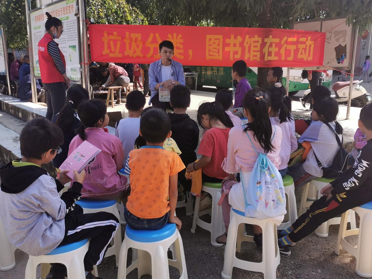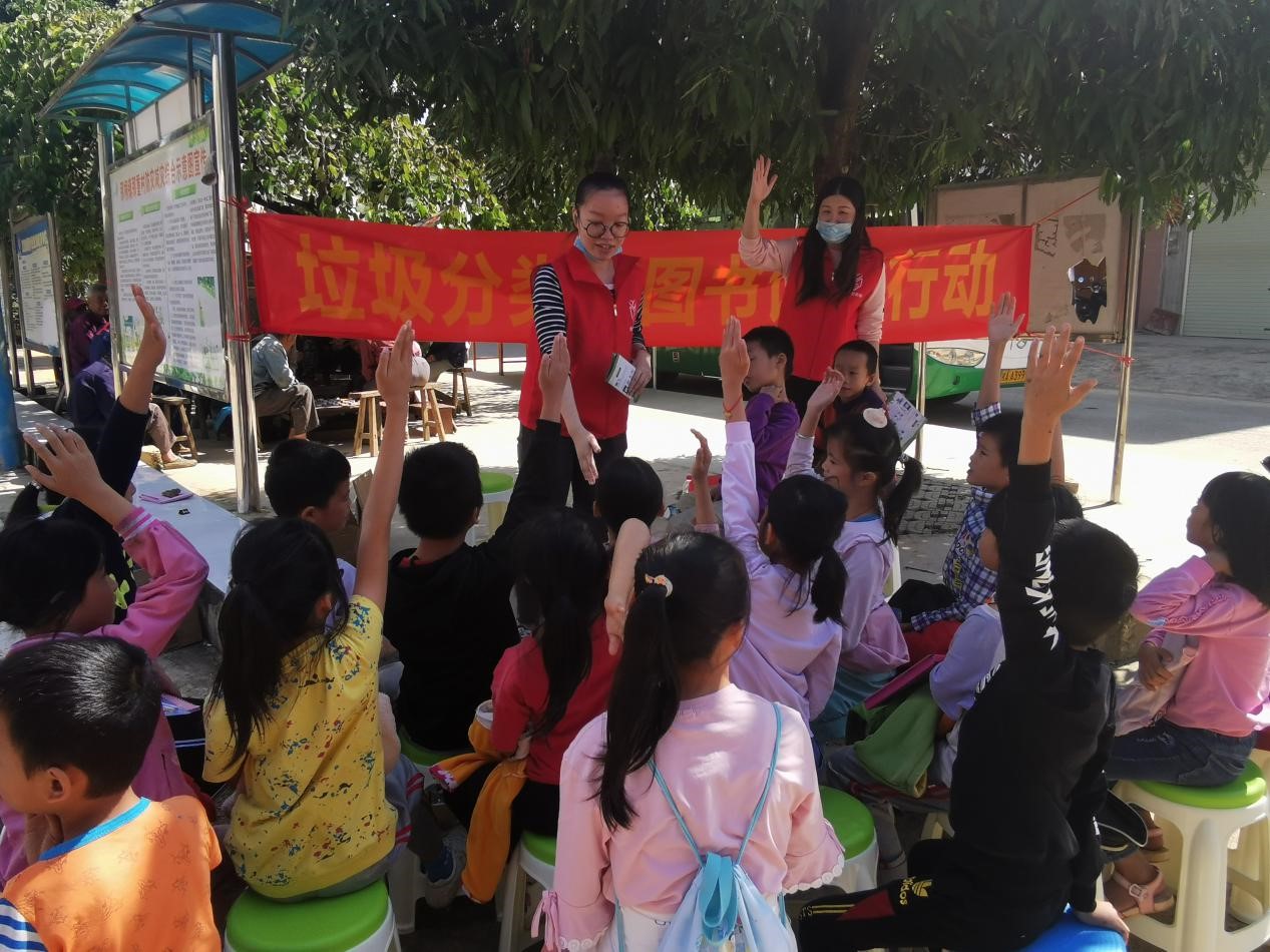 2020年10月21日上午,南宁市图书馆将生活垃圾分类知识送到隆安县那桐镇那重村,向村民发放《南宁市生活垃圾分类操作指南》宣传资料,指导村民了解生活垃圾分类的必要性,传递生活垃圾划分为可回收物、有害垃圾、厨余垃圾、其他垃圾四大类的处置路径,掌握生活垃圾分类投放、分类收集、分类运输、分类处理的方式,大力宣传《南宁市生活垃圾分类管理条例》。给村里的孩子们普及生活垃圾分类小常识,孩子们认真听讲,踊跃回答问题。生活垃圾分类知识的学习要从小抓起,从城市到乡村,做到家家户户参与,人人皆知。