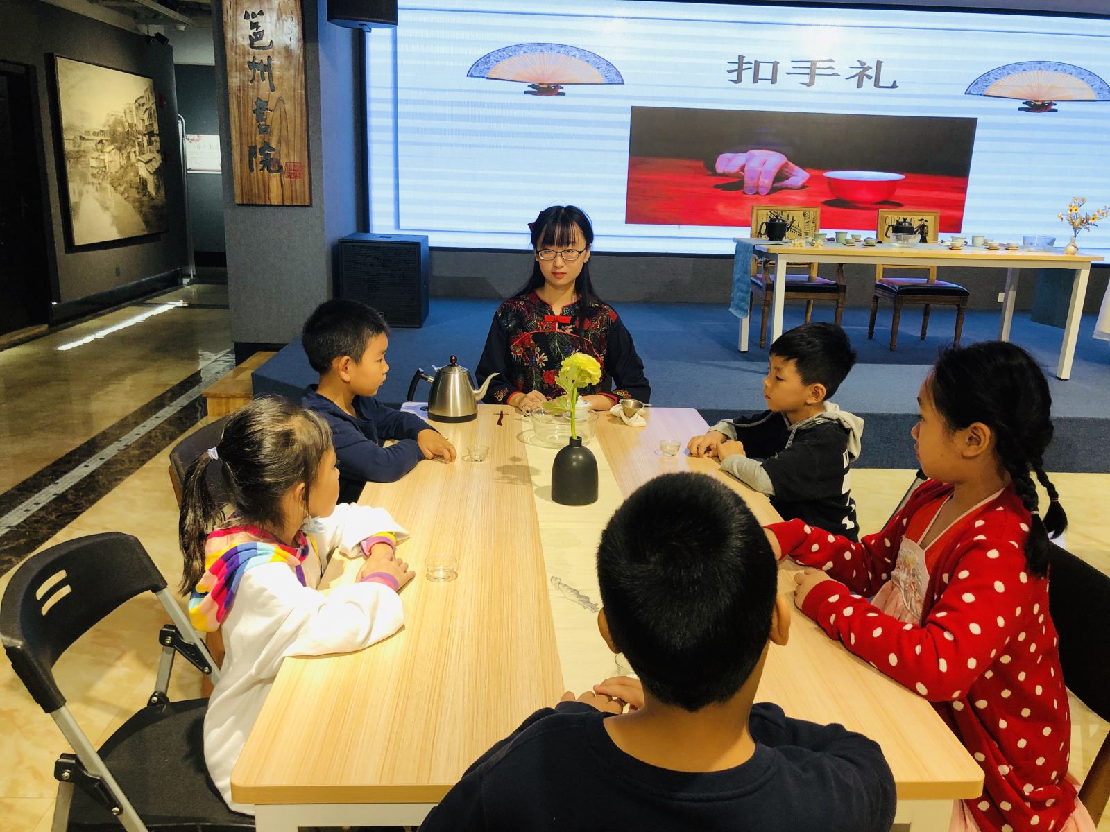 在小读者们最期待的茶艺实践环节中,陈老师强调泡茶时只有怀着一颗恭敬的心,才能泡出一杯好的茶,所以每位小读者都被要求端坐行茶,肩平手稳。小读者们对茶艺的热爱超出了大家的想象,一直乐此不彼地沉浸在茶艺体验的乐趣中,意犹未尽。为了满足小读者们的愿望,工作人员还稍微延长了活动时长,让小读者能够尽情感受茶艺文化的魅力。