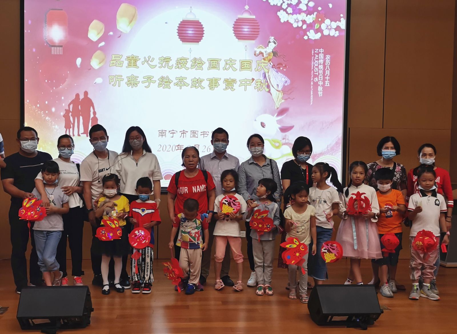当世界上最美好的两件事情相遇,中秋追上了国庆,国泰民安,阖家团圆,会迸发出怎样的火花?2020年10月1日国庆、中秋双节相逢,上午10点15组小读者家庭如约而至,相聚在南宁市图书馆共同参加“品童心抗疫绘画庆国庆·听亲子绘本故事赏中秋”2020年南宁市图书馆国庆节、中秋节未成年人活动。