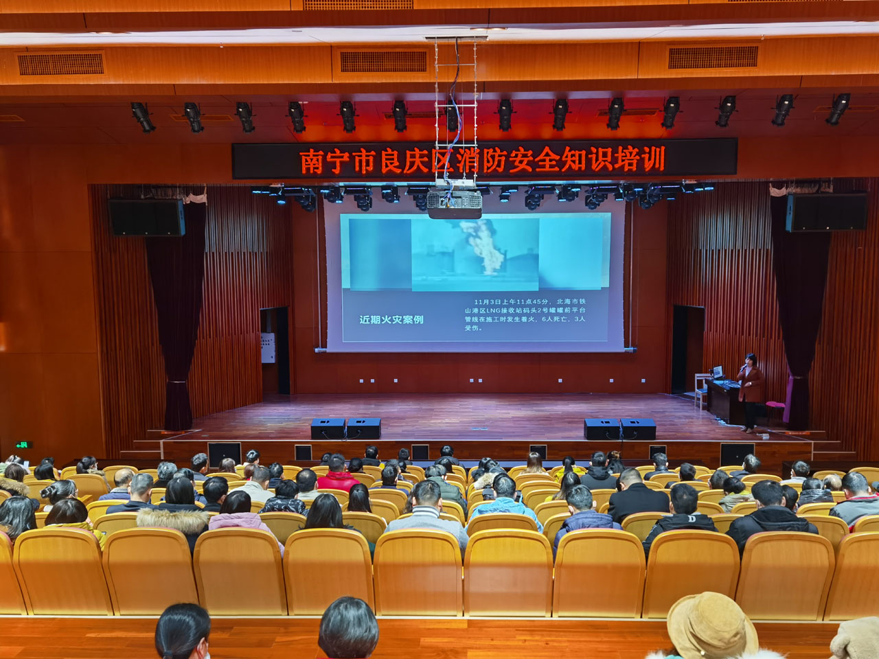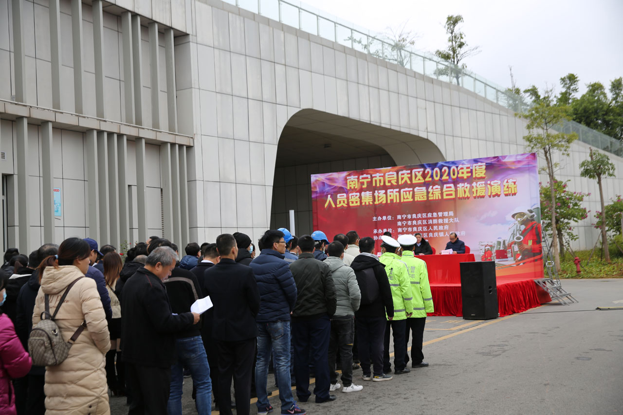 2020年12月18日上午,良庆区2020年度人员密集场所应急综合救援演练在南宁市图书馆举行,良庆区应急管理局、良庆区消防救援大队、良庆区公安分局、交警六大队、良庆区卫生健康局、良庆生态环境局、良庆区良庆镇人民政府、南宁市图书馆、大沙田水厂、五象供电局等多家单位参与演练。在良庆区应急管理局和良庆区消防救援大队专业消防队员的指导下,图书馆全体干部职工现场模拟了火场逃生,随后参加了消防安全知识培训。