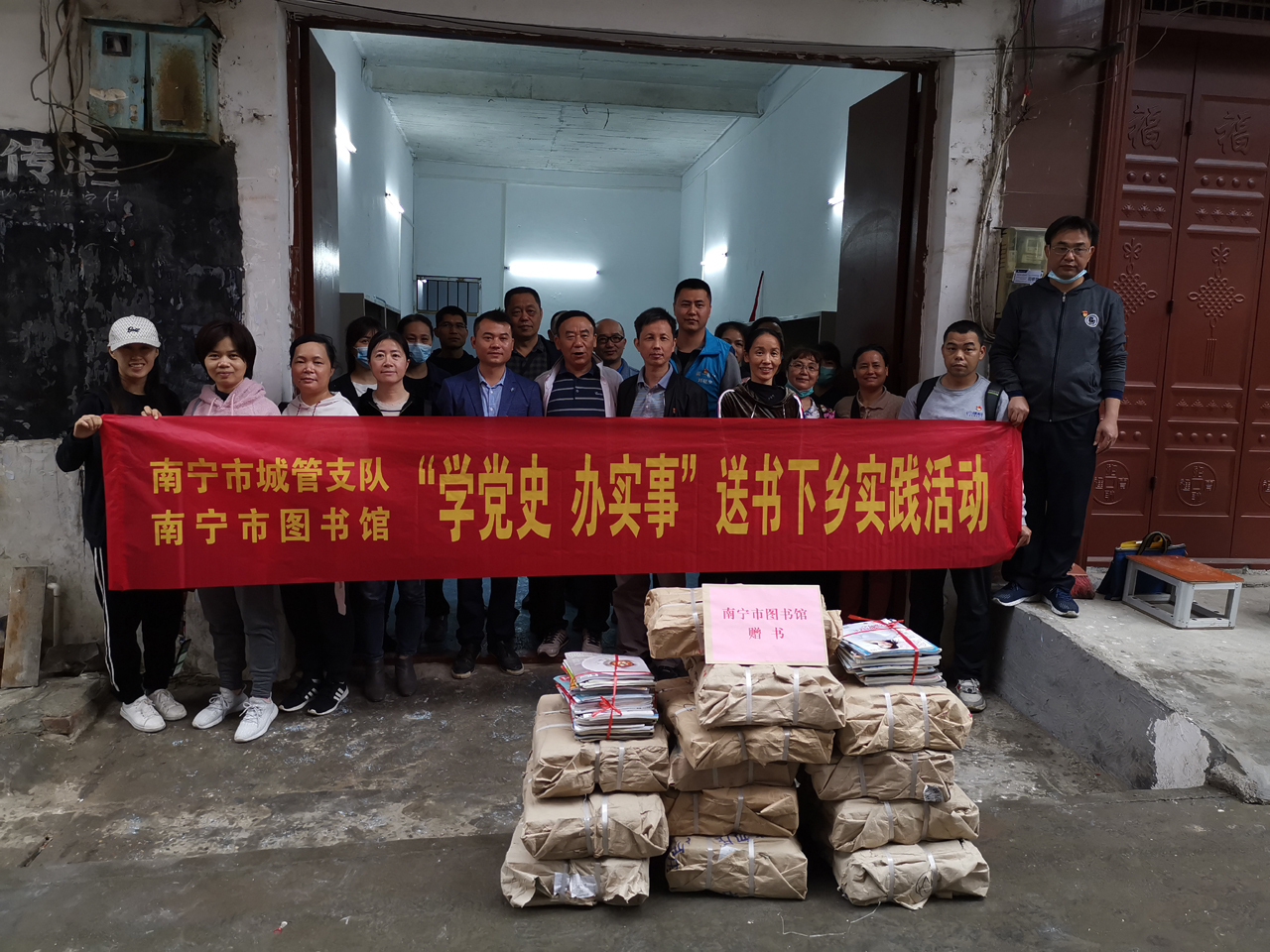 春耕时节,草长莺飞,大地回春。2021年3月26日,南宁市图书馆充分发挥公共图书馆向城乡基层延伸的馆外服务功能,联合市城管支队和上林县图书馆在上林县塘红乡万福村村委一楼图书室共同设立图书流通站。市图书馆党员先锋志愿者服务队、市城管支队党支部与万福村的党员同志共同开展联合党日暨学雷锋志愿服务活动,为村民群众送服务办实事。