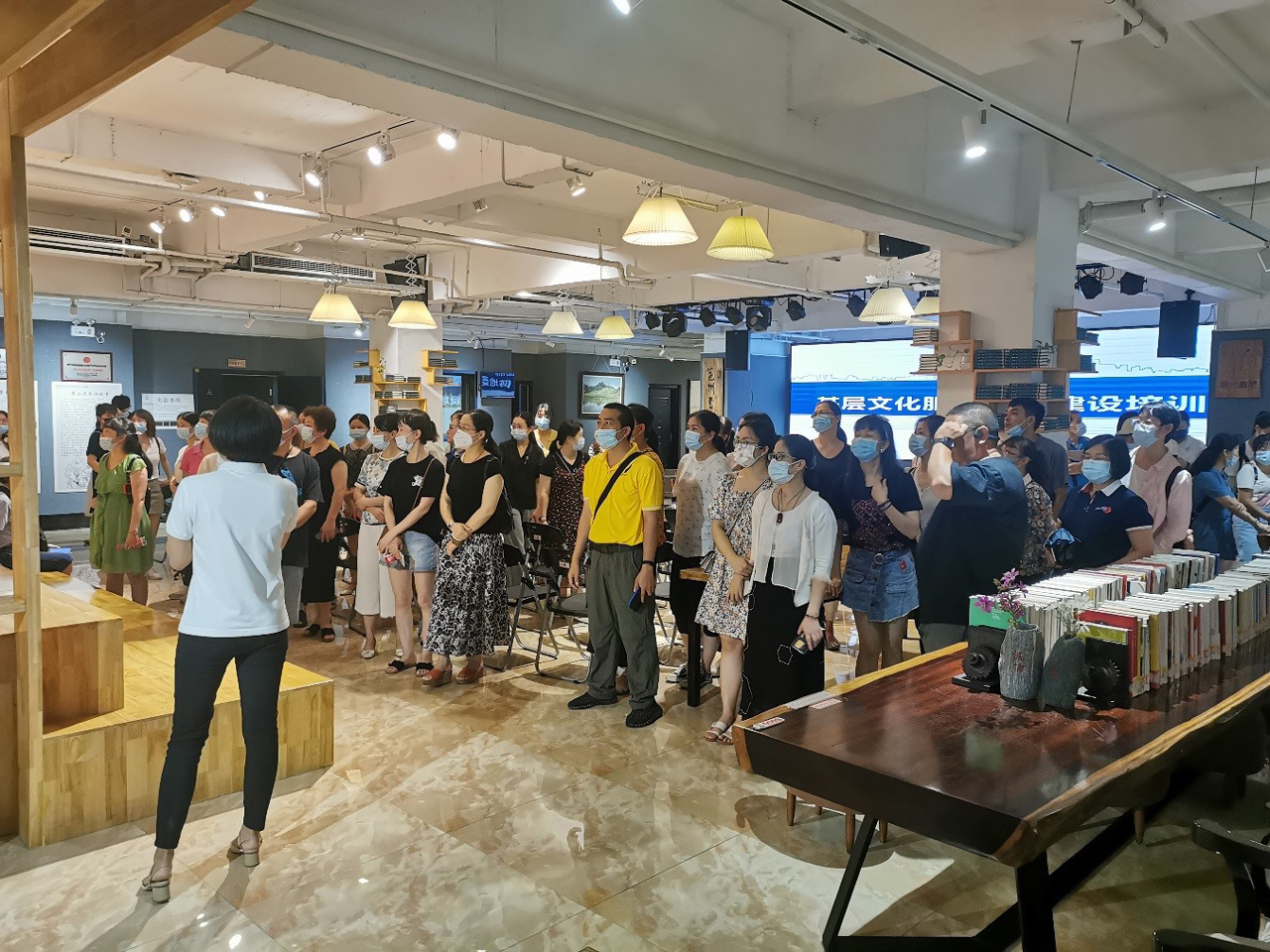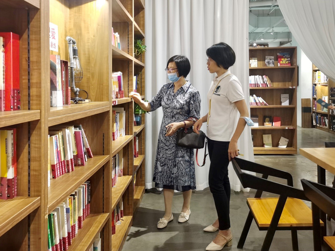 随后,学员们来到403禾集分馆,跟随工作人员的讲解,认真参观学习,亲身体验新颖的阅读方式和独特的服务模式。403禾集是一个以书店、剧场、美术馆、绘本馆、餐饮相融合的文化创意集合空间,致力于凭借平台优势,搭建广西与国内外其他艺术活动的沟通桥梁,引进先锋作品,打造广西文化品牌,同时将实体经济与创意经济相结合,通过以实体行业支撑,补充创意工作,为市民提供图书借阅购买、音乐赏析、影视体验、戏剧演出观赏、艺术展览等服务,从不同维度满足了市民的精神文化需求。403禾集分馆的成立,开创了“图书馆与书店融合发展”的新潮流,值得借鉴学习。