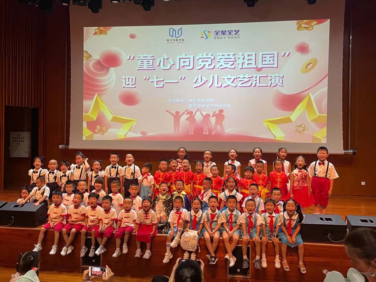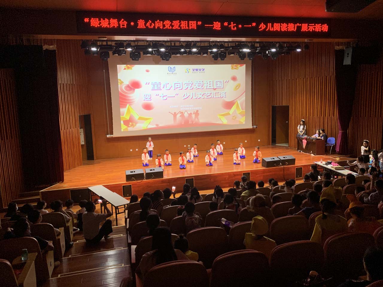为全面贯彻国家语言文字方针政策和法律法规,传承弘扬中华优秀传统文化,开展形式多样的宣传推广普通话阅读推广活动,充分展示南宁市优秀绿城青少年读者的文化风貌,在党的生日即将来临之际,南宁市图书馆联合南宁市全星全艺教育咨询有限公司在6月27日共同举办了“绿城舞台·童心向党爱祖国”——迎“七·一”少儿文艺阅读推广展示活动。