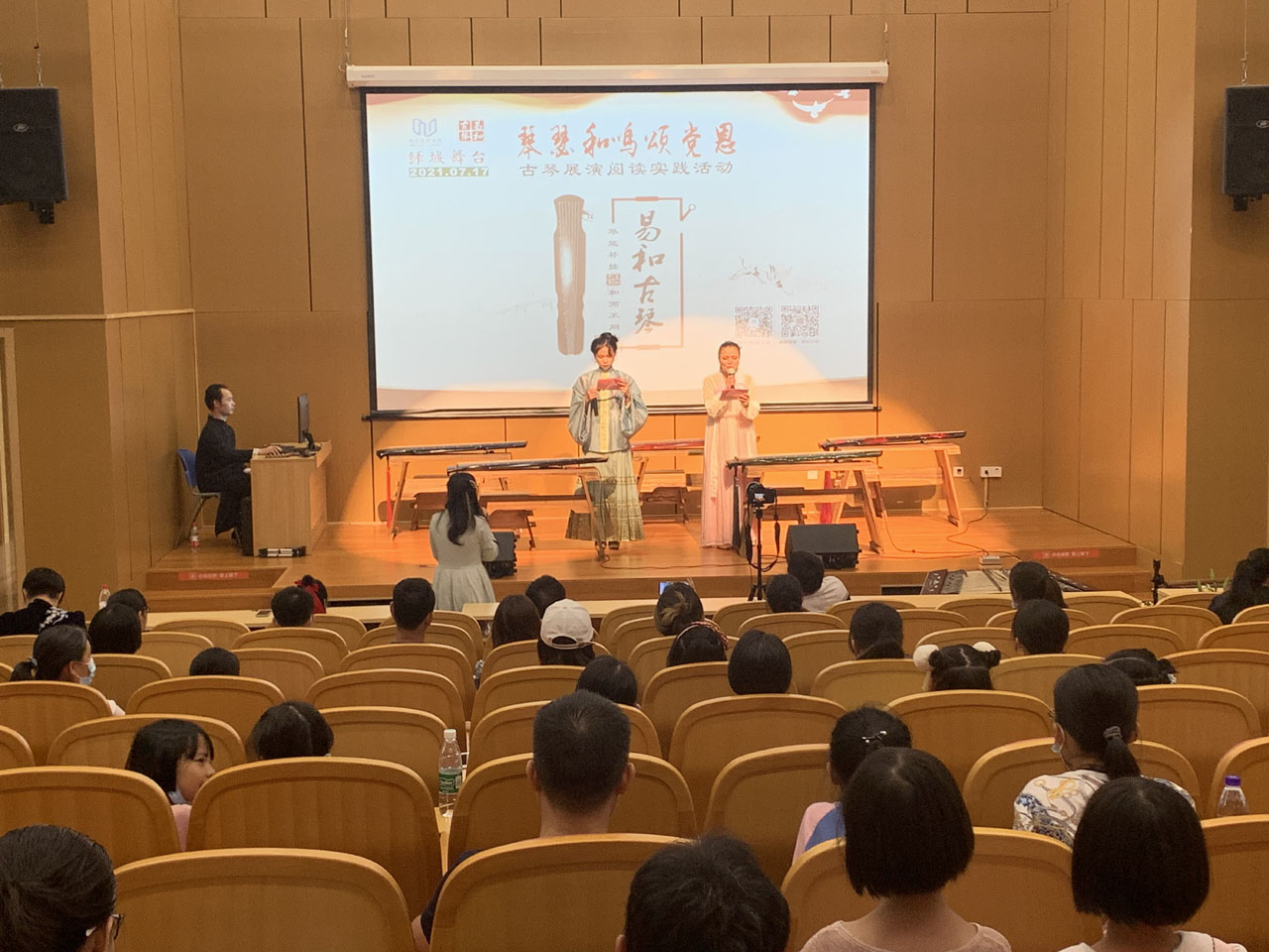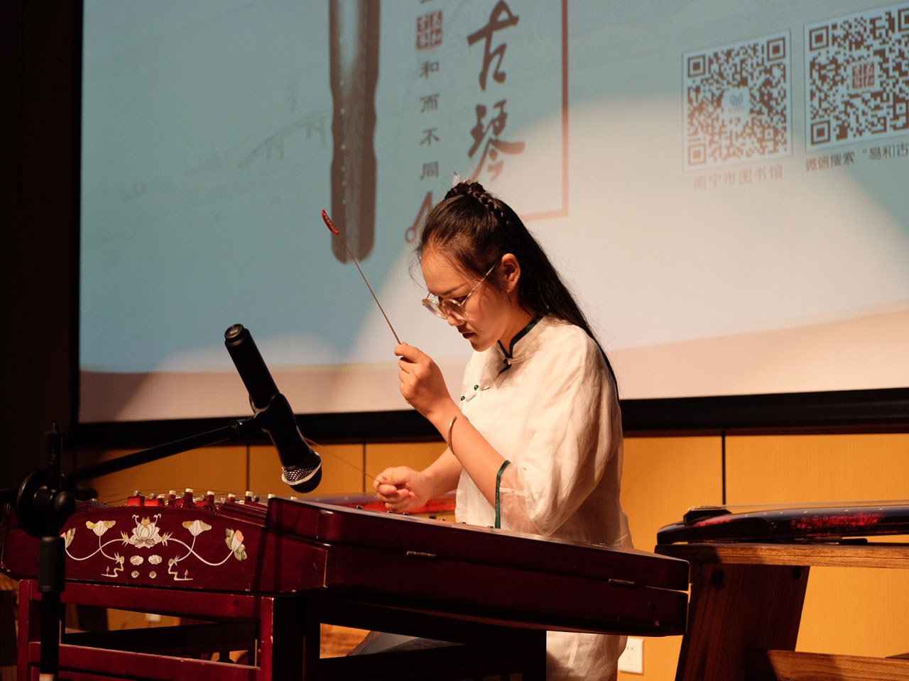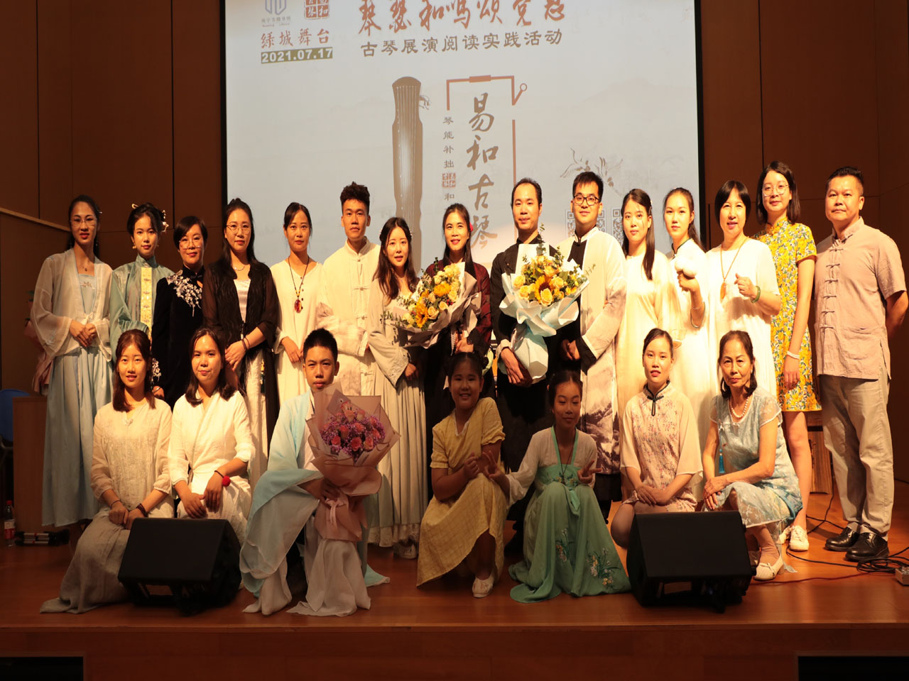习近平总书记指出:“文化是一个国家、一个民族的灵魂。”古琴音乐既是中国音乐的典型代表,也是中国最为厚重的传统文化的一部分。古琴不仅具有观赏价值,更极具教化意义,是中国文化自信不可或缺的一部分。为庆祝中国共产党成立100周年,大力推动古琴演奏艺术文化的传播,让更多市民读者了解古琴之美,7月17日下午,南宁市图书馆与易和古琴艺术中心联合举办了一场精彩纷呈的“绿城舞台·琴瑟和鸣诵党恩”古琴展演阅读实践活动。