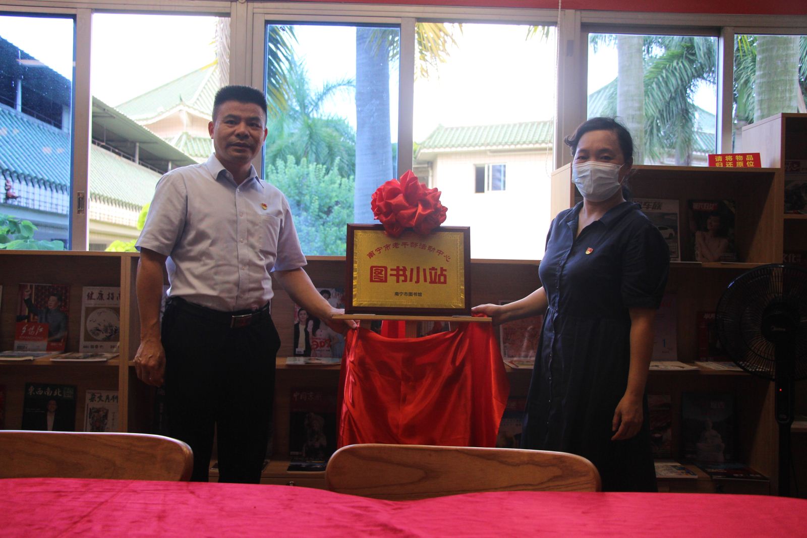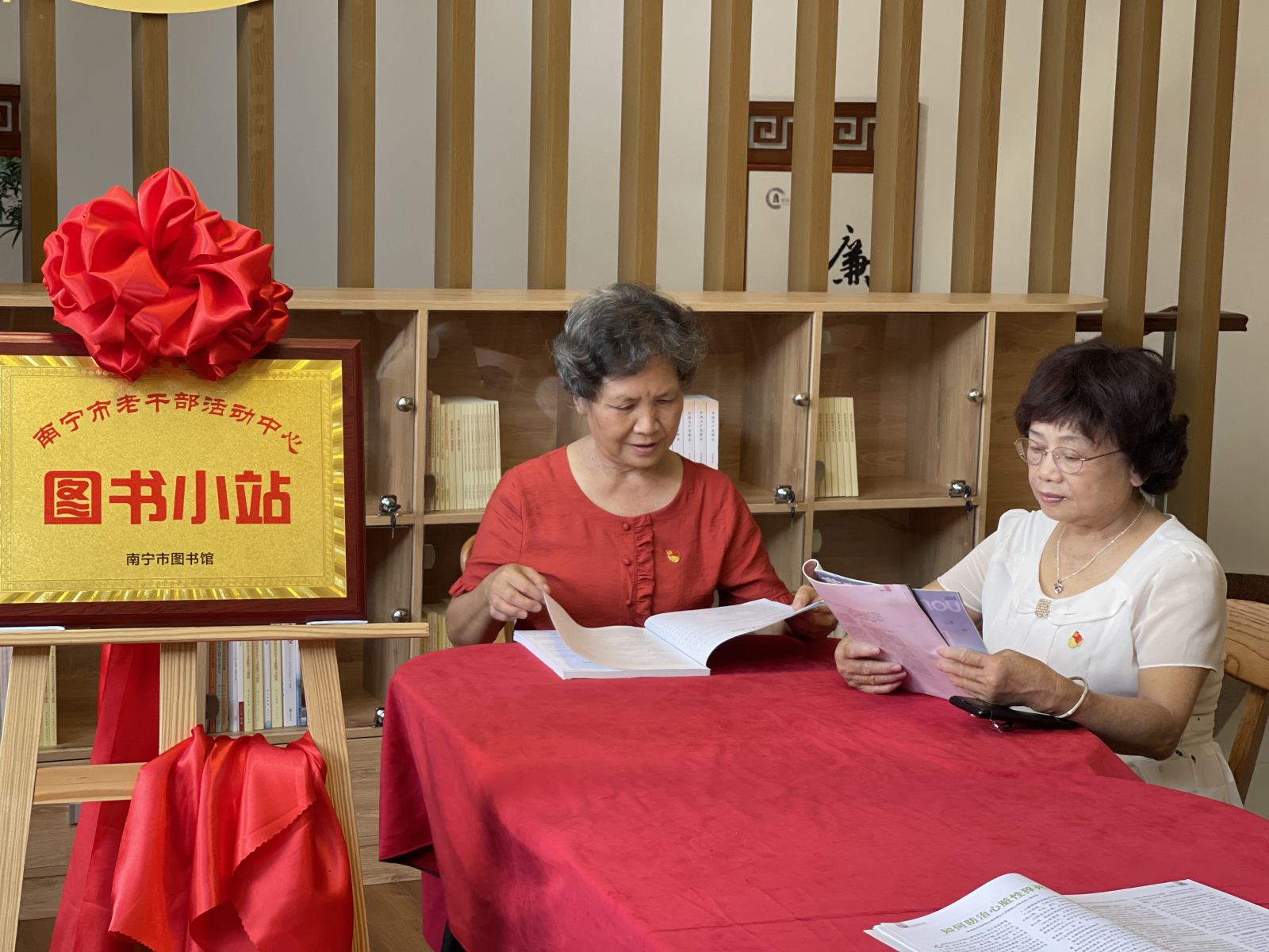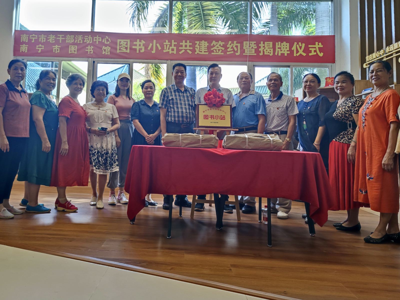 为积极应对我国人口老龄化的发展,助力构建老有所学的终身学习体系,丰富广大老同志的精神文化生活,2021年8月18日,由南宁市图书馆、南宁市老干部活动中心(南宁市老年大学)合作共建的“图书小站”揭牌成立,双方代表签订共建协议。市委老干部局四级调研员冯兰桂、市老干部活动中心主任黄邦林,市图书馆业务辅导部工作人员及老年大学部分离退休老同志参加了揭牌仪式。