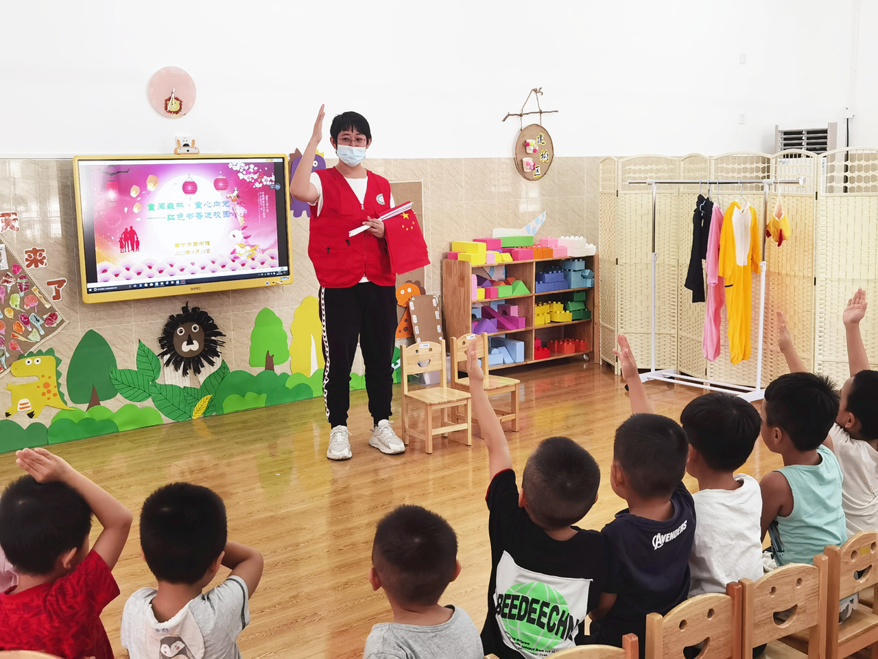 在“童阅森林·同心向党”爱国主义小课堂上,图书馆的老师和大家一起学习国家、国旗的基本知识,了解“九一八事变”的经过,一齐大声说出“我是中国人,我爱我的祖国。”小朋友们一个个争先恐后地说出自己长大以后的理想,要把祖国建设得更加美好。孩子们有的说要做老师,有的说要做工程师,有的说要做解放军,有的说要做消防员……一股纯朴的爱国主义情感在一颗颗幼小的心灵中萌发。