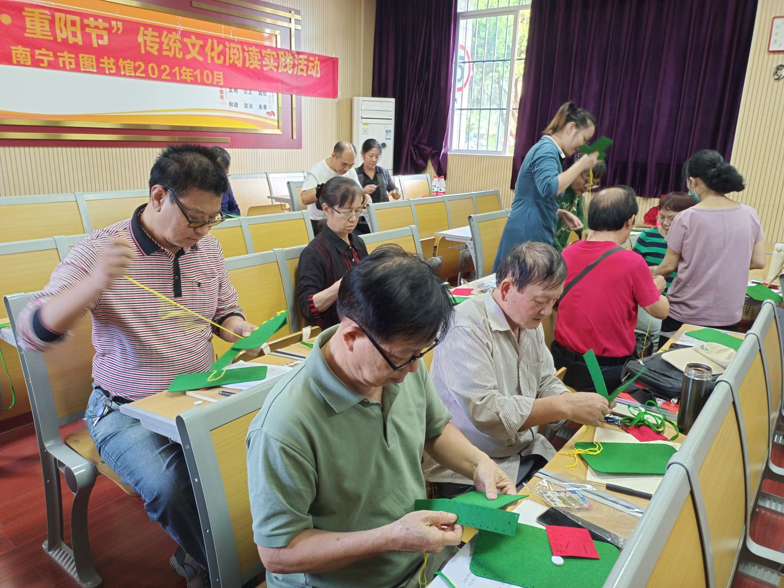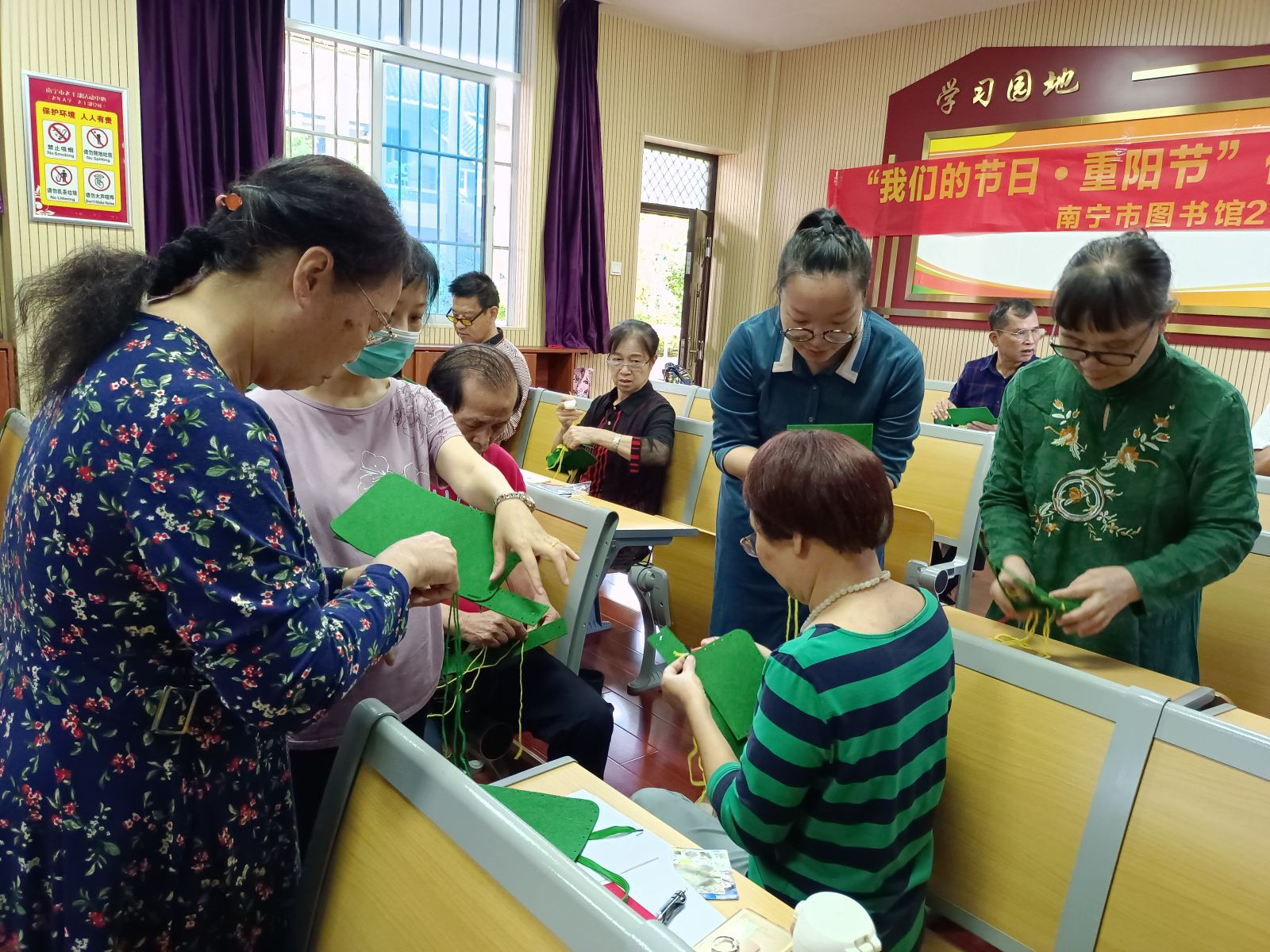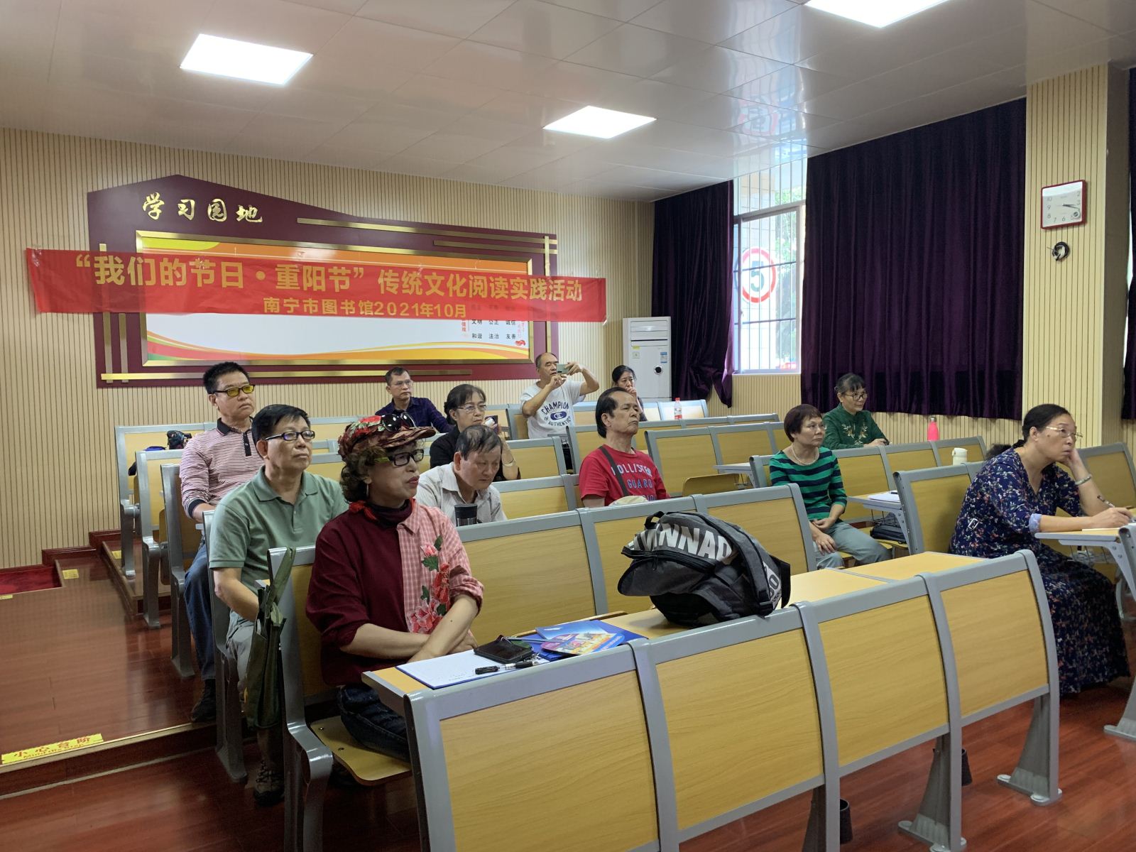 满园花菊郁金黄,九日茱萸又重阳。为弘扬中华民族尊老、敬老、爱老、助老的传统美德,营造良好的尊敬老人的社会氛围,南宁市图书馆在这个菊桂飘香的美好季节里,走进南宁市老干部活动中心,举办“我们的节日·重阳节”传统文化阅读实践活动,为老年读者朋友带去一场异彩纷呈的文化活动,给大家带去温暖的同时丰富他们的精神文化生活,体现重阳节敬老、尊老、爱老、护老的节日意义。