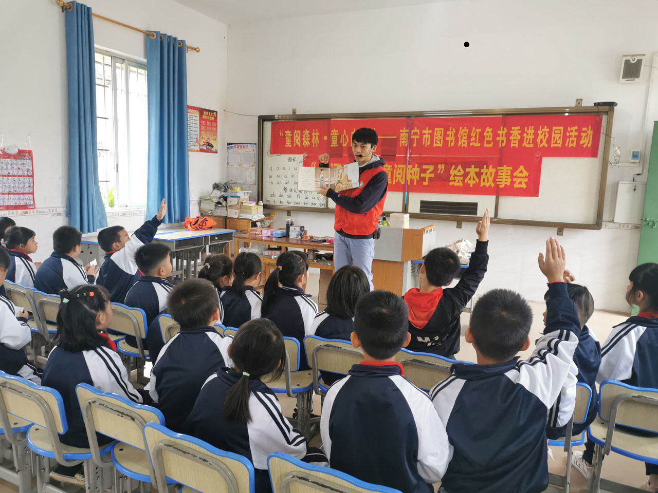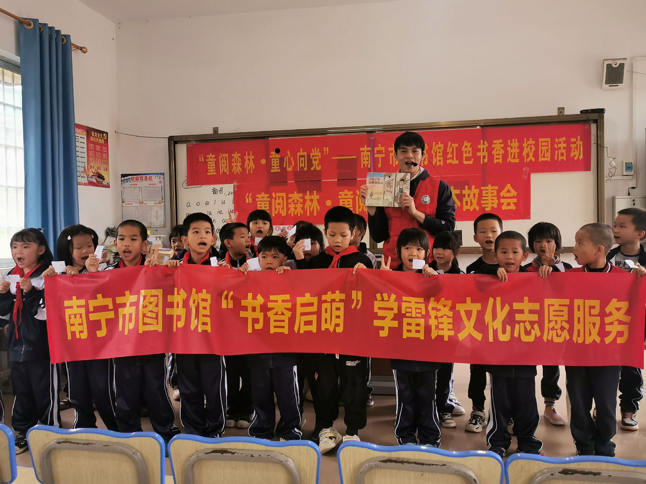 11月3日,南宁市图书馆志愿服务队协同南宁市图书馆2021年“我们的中国梦”文化进万家活动之“我为群众办实事”活动驱车三个小时来到横州市百合镇同菜村委小学,以“书香启萌”文化志愿服务项目为载体,组织拥有专业知识的阅读志愿者走进乡村校园,开展了相关的“小瓦特科普室活动”、“童阅种子绘本故事会”两场活动,让身处乡村的未成年人共享到了南宁市图书馆的公共文化资源。