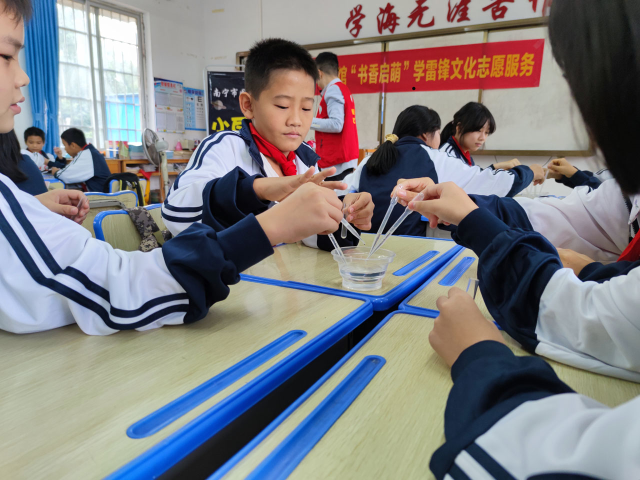在“小瓦特科普实验室”活动中,志愿者游老师带领四年级和六年级的同学们通过液体表面张力实验,科普了液体跟气体接触的表面存在一个薄层,叫做表面层,表面层和液体内部存在分子,互相作用之下表现为引力。同学们通过聆听老师的科普讲解及动手操作三个小实验,实现了边玩科学边学知识,既提升了科学素养,又锻炼了动手能力。“童阅种子绘本故事会”活动则是在一年级教室里面开展,志愿者老师通过与大家分享绘本《马背上的女图书馆员》,引领大家走进了一个关于读书的绘本故事。志愿者老师通过故事讲述和现场互动,把现场的小朋友带入到了故事的情景当中,最后鼓励大家养成爱读书、勤读书的好习惯。