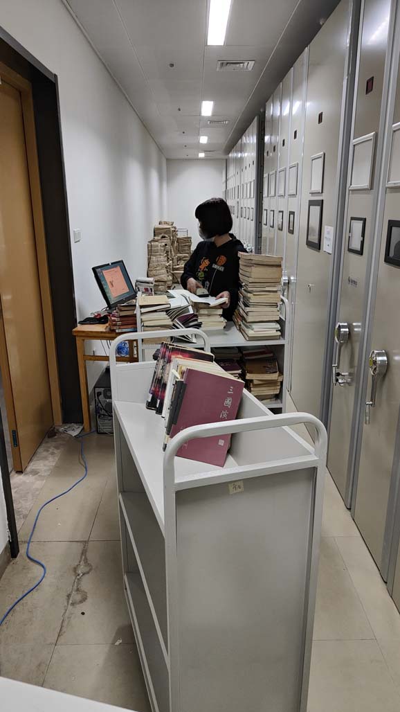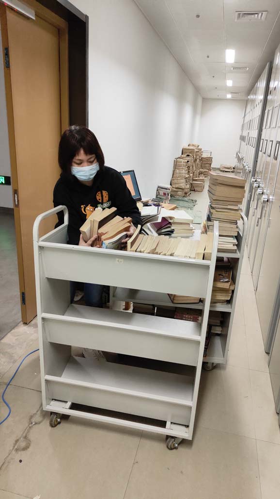 南宁市图书馆密集库的工作由借阅部全权负责,从新馆开放以来,密集库的图书上架工作从未结束。近期,借阅部根据需求继续有条不紊的进行密集库的建库工作,工作过程包括从开放书架上抽选下架图书、图书搬运、加贴RFID标签、将数据录入系统、图书上架等环节。除了本馆下架图书,密集库图书还包括一些从馆外流通点、社区24小时自助图书馆和旧馆运回来的图书,借阅部也需要对这些图书进行加工并上架。