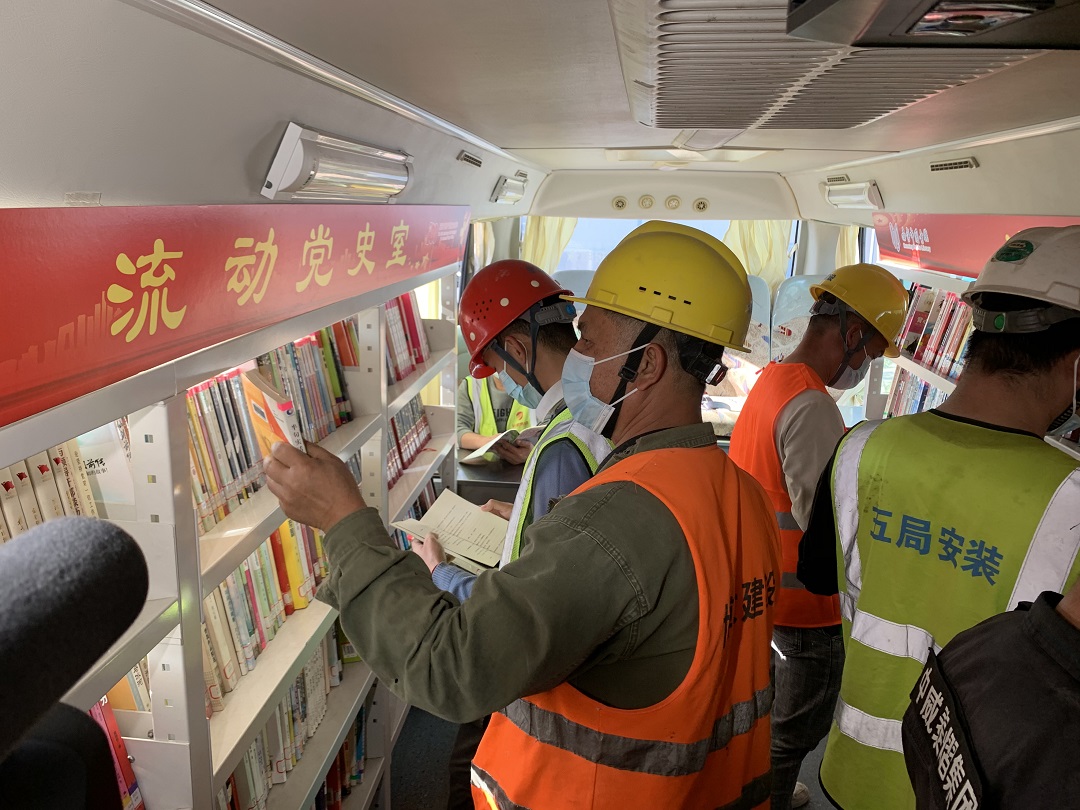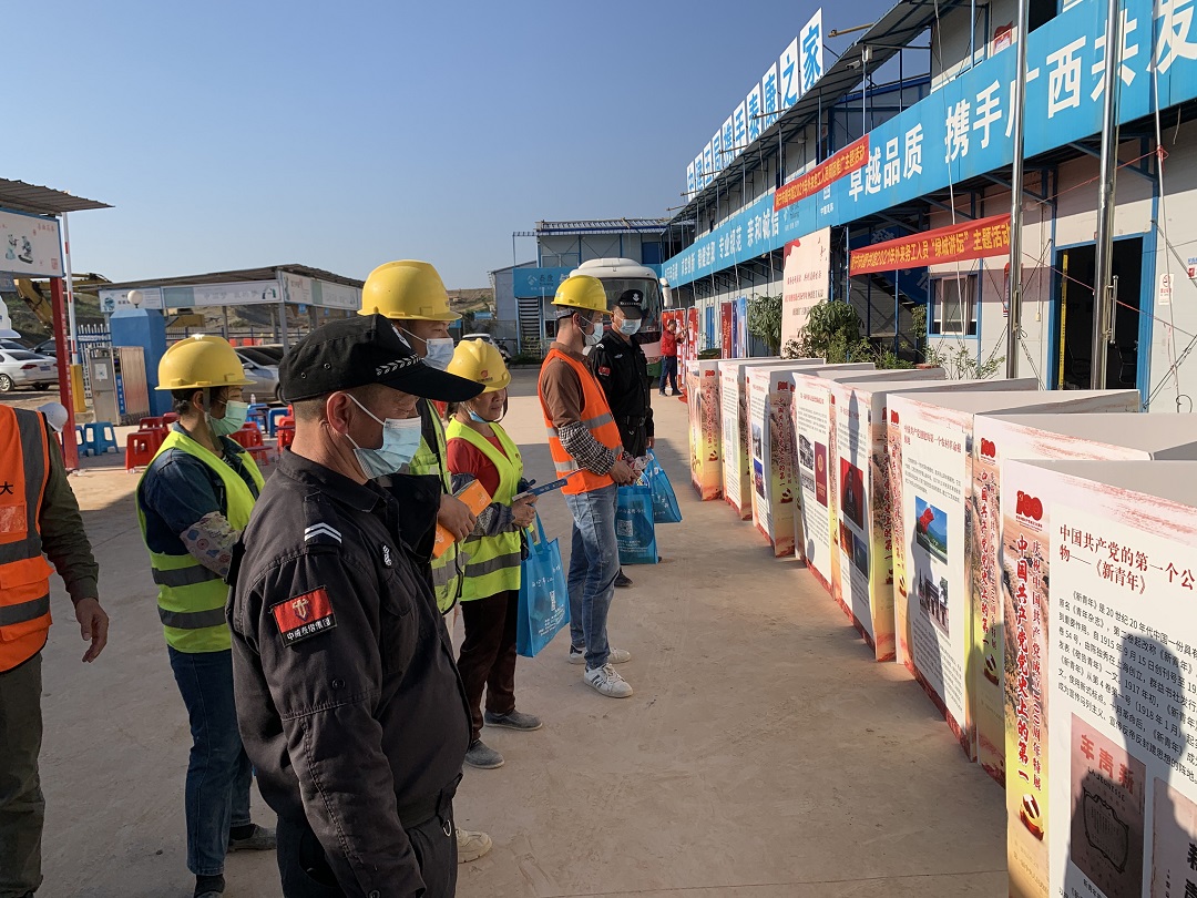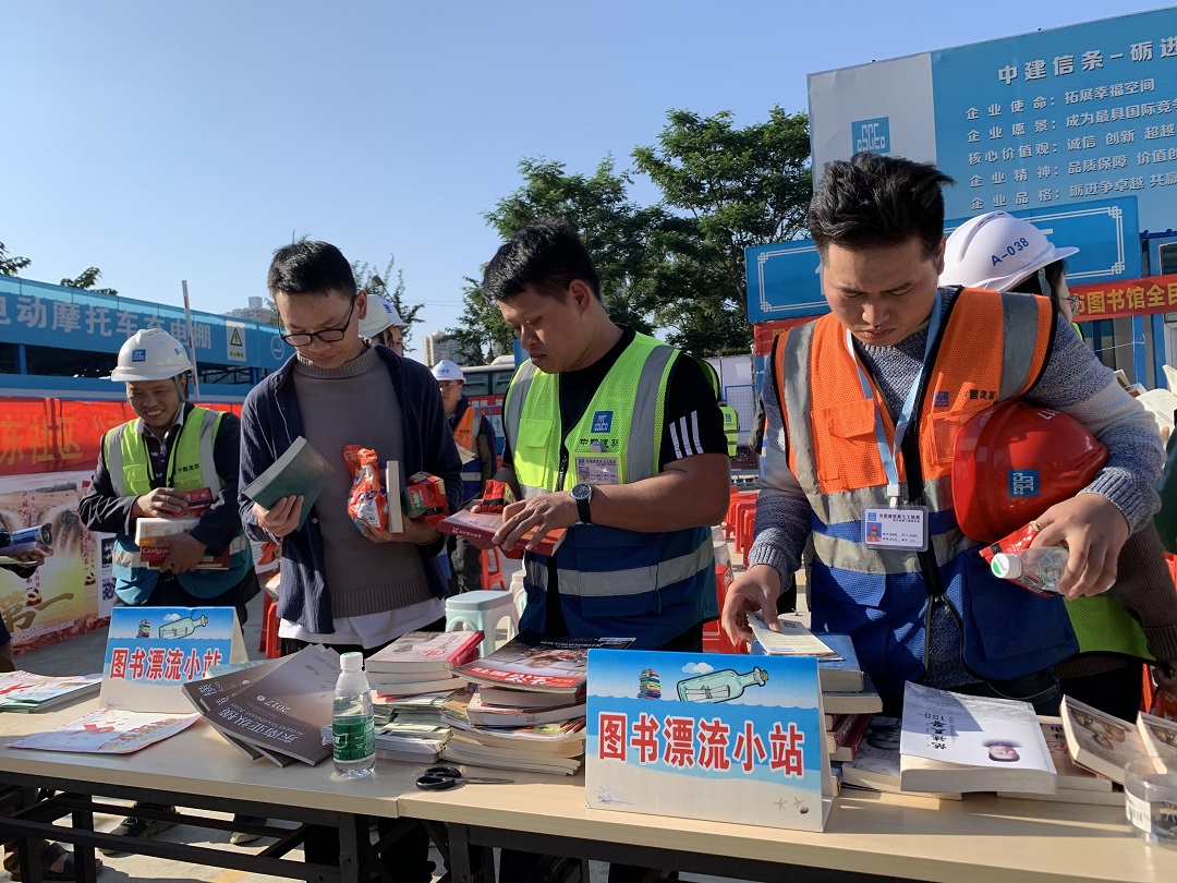 此外,南宁市图书馆还将图书车开进工地,开展了汽车图书馆阅读活动,同时,党史知识、建筑知识和垃圾分类知识有奖竞答活动在讲座结束后都吸引大家驻足于此乐此不疲;“中国共产党历史上的第一”专题展览前同样站满了观展的外来务工人员;图书漂流进工地活动摊位前更是有很多外来务工人员捧起了自己心仪的图书认真阅读。每位外来务工人员参与者的手上都拎着参与活动所得的小礼物,满脸喜悦。
