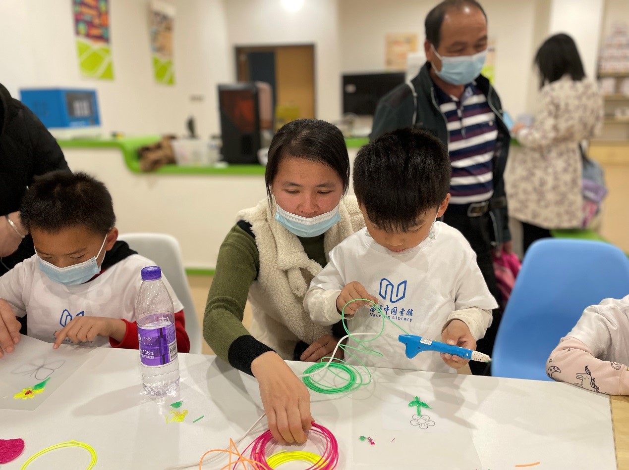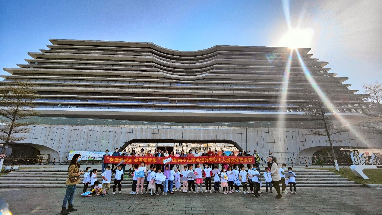 12月4日,南宁市图书馆外来务工人员文化艺术节——首届“图书馆奇妙夜”活动在南宁市图书馆内举行。本次活动共招募30余组南宁市外来务工人员家庭参与,以“永远跟党走 书香颂百年”为主题,以各类创意阅读活动增进亲子关系、激发孩子的阅读兴趣,唤起孩子们对图书馆的热爱,将少年儿童培养为有知识、有品德、有作为的新一代建设者,也增进新南宁人在南宁的归属感和安全感。
