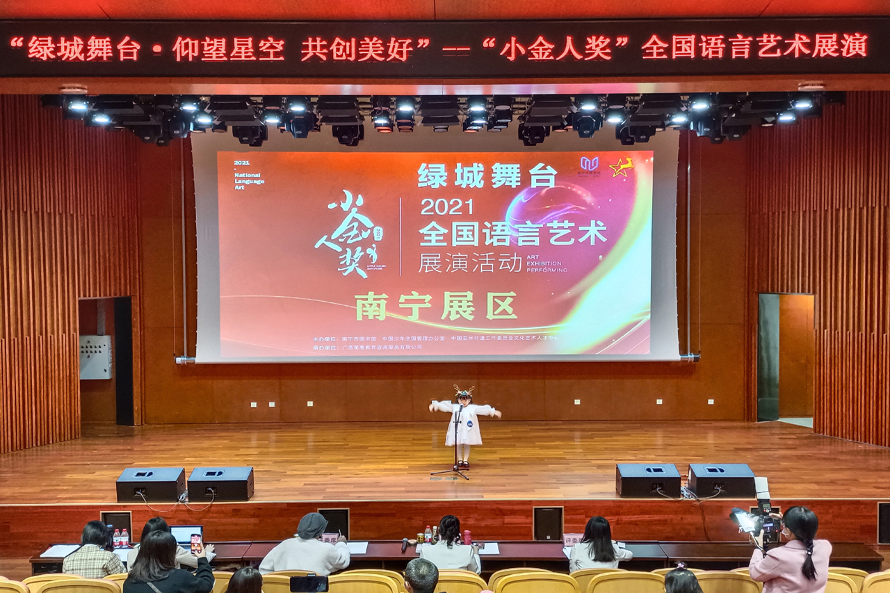 为全面践行党的教育方针,深入贯彻落实习近平总书记关于文化自信理论的重要指示,贯彻落实党的十九大精神,积极推进新时代青少年美育事业,培育弘扬社会主义核心价值观,展现当代青少年积极向上的昂扬风采,12月4日,由南宁市图书馆主办,广西星鹿教育咨询服务有限公司协办的“小金人奖”全国语言艺术展演活动成功举办。展演活动以“绿城舞台·仰望星空 共创美好”为主题,旨在弘扬中华美育精神,塑造语言艺术传承典范,展示新时代语言艺术教育教学成果,促进绿城语言艺术教育交流和发展。