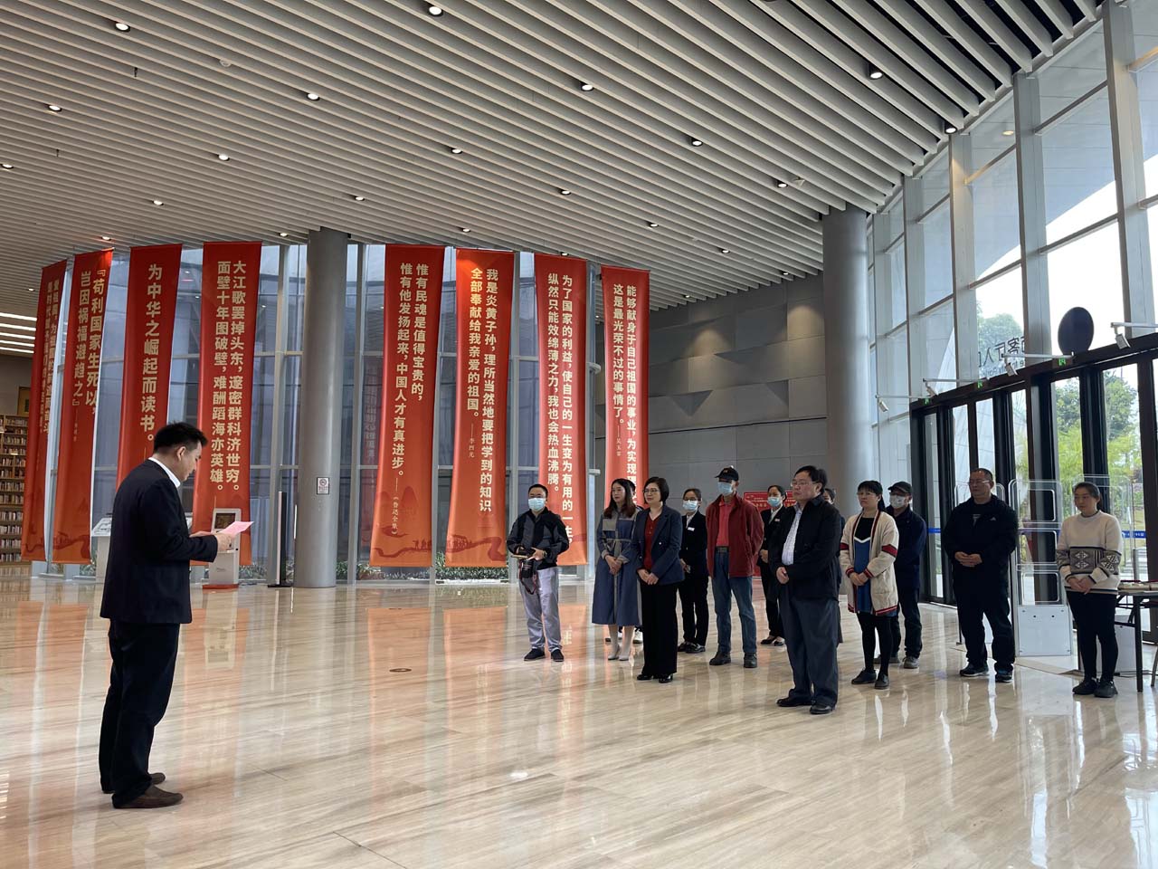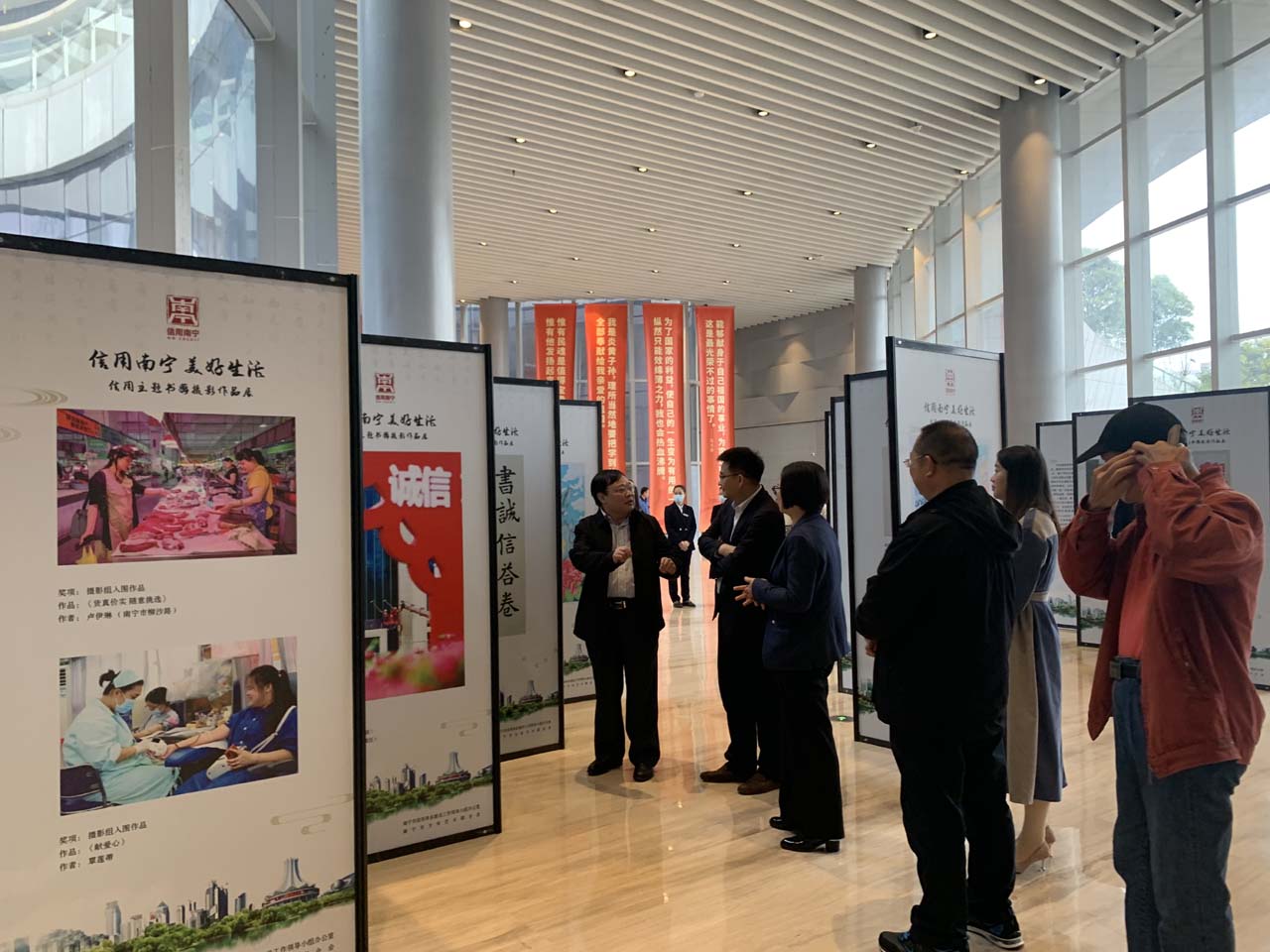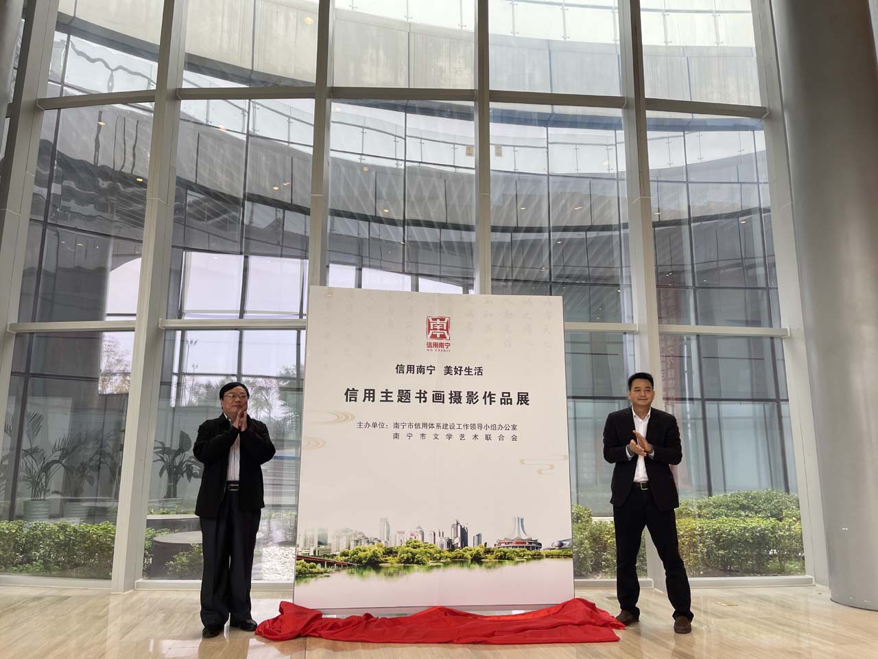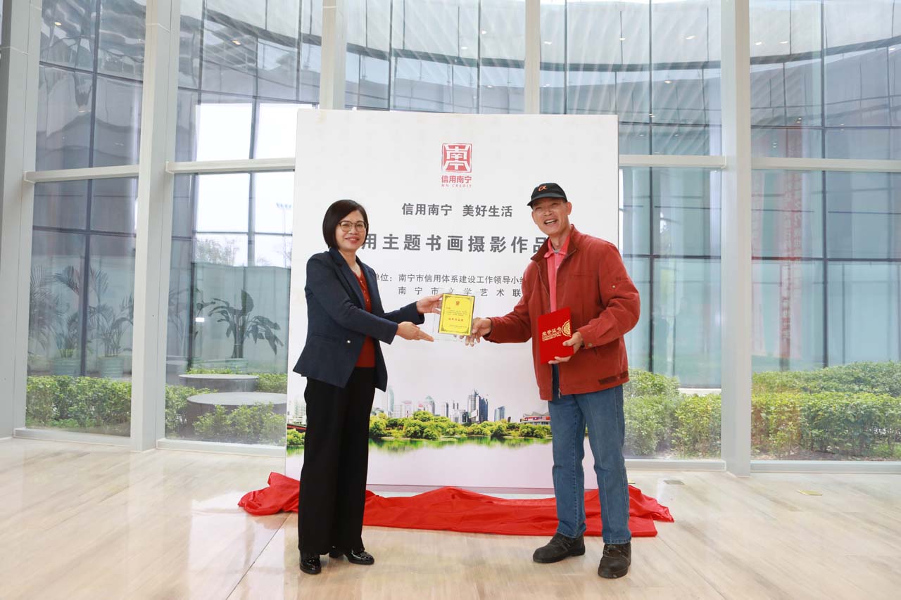 2021年12月16日,“信用南宁 美好生活”信用主题美术书法摄影优秀作品巡展启动仪式在市图书馆举行,市发展改革委副主任、市信用办副主任黄胜,市文联副主席唐志伟,市图书馆副馆长蒋桂香以及书画摄影作品获奖人员代表参加此次仪式。