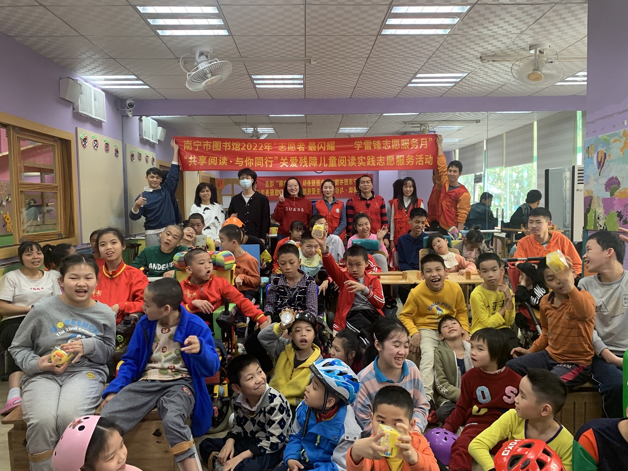 为弘扬雷锋精神和“奉献、友爱、互助、进步”的志愿精神,进一步推动我馆志愿服务制度化、社会化、常态化,南宁市图书馆策划了2022年“志愿者 最闪耀——学雷锋志愿服务月”主题系列活动。2022年3月9日下午,我馆文化志愿服务队走进广西云彩社会工作服务中心开展了“共享阅读·与你同行”关爱残障儿童阅读实践活动。