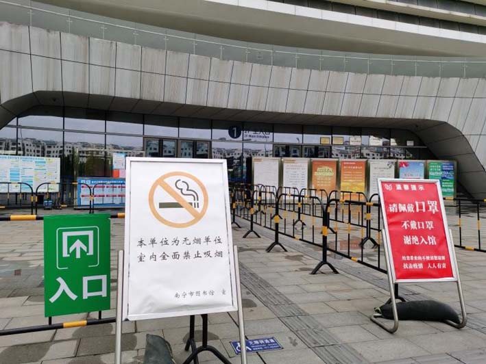 全面消毒杀菌,综合整治馆内卫生清洁。在坚持每日对全馆进行消毒杀菌的同时,南宁市图书馆利用周五闭馆的时间段组织开展形式多样的环境卫生大扫除活动,确保办公区域、公共阅览区域、设备运行区域、停车场的卫生清洁。加大公共阅读场所设备设施通风消毒的次数,对人员密集场所的环境卫生进行彻底打扫,消除保洁卫生盲区;结合疫情防控形势和春季蚊虫孳生特点,重点对本馆生活垃圾分类收集站、可回收物临时存放点、垃圾箱、公共厕所、下水道、墙角、绿化带等容易孳生蚊蝇的场所、区域进行喷药消杀防疫,灭除“四害”孳生地,有效遏制春夏季季节蚊虫孳生。