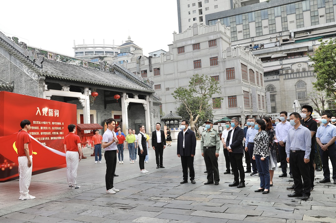 活动从“时代楷模”黄文秀大学入党场景开始,运用情景表演重温入党誓词,同唱国际歌,南宁市图书馆阅读推广人陈思佳向大家推荐阅读《共产党宣言》,共同感受信仰的力量。接着,在《春天的故事》音乐中重现改革开放初期的繁荣,在荐读《中华先锋人物故事汇》、《巨变:改革开放40年中国记忆》画册中与历史同行。随着扮演“时代楷模”黄大年演员的登场,阅读推广人朗读《最美奋斗者黄大年--生命为祖国而澎湃》书中经典片段,向楷模致敬,并推荐书籍《功勋》,号召大家学习榜样力量,争做时代奋斗者。三个场景演绎串联起“我们的信仰”“走在大路上”“领航新时代”三大主题。