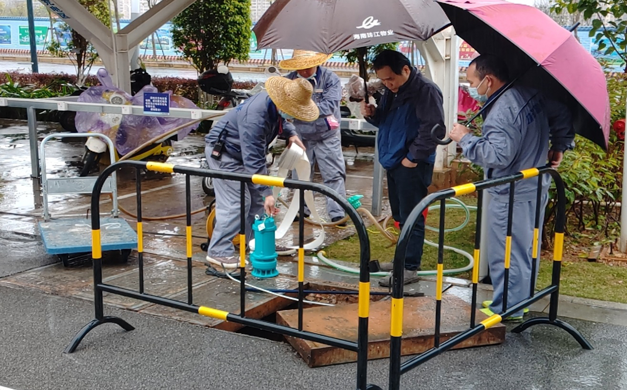 5月11-12日,受低涡切变线和地面弱冷空气影响,南宁全市多地强降暴雨。13日,物业和安全管理部再次组织安保人员开展防汛巡查检查,抽出水沟积水,疏通雨水管道,排除浸水风险隐患。