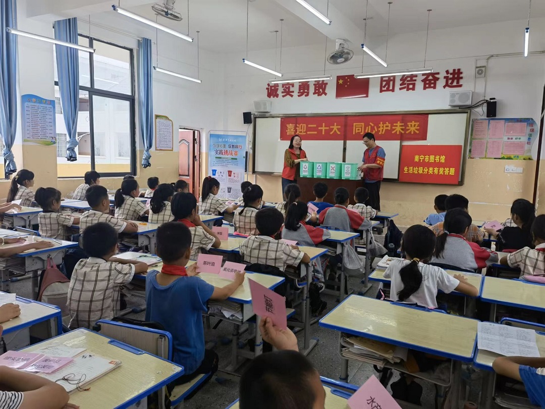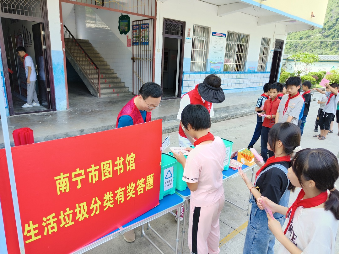 为加快推进上林县农村生活垃圾分类源头分类减量和垃圾治理水平,改善农村人居环境,南宁市图书馆特策划科普阅读绿色行动“庆六一·流动书香进校园”系列服务之生活垃圾分类知识进乡村小学课堂。