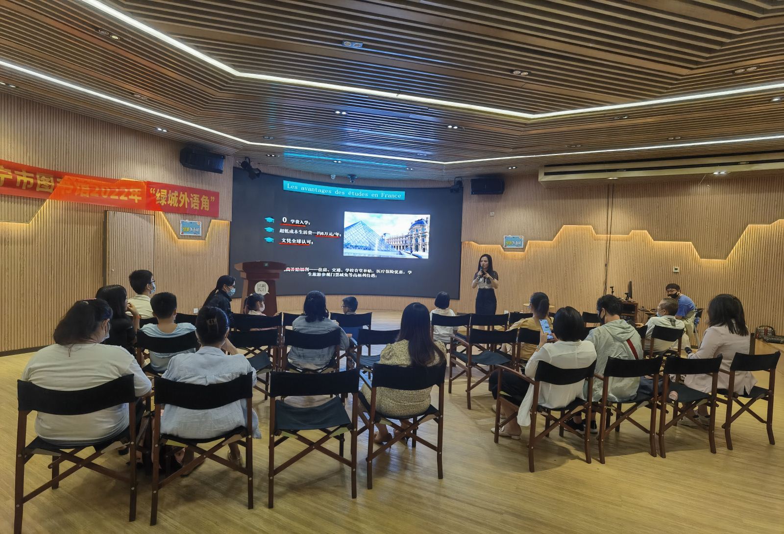 2022年10月23日、29日下午,“绿城外语角”第32、33期活动先后在漓江书院(三祺广场旗舰店)漓江讲堂举办。两期“绿城外语角”活动分别以俄语、法语为主题,特邀广西侨梁教育机构经验丰富的外语老师为读者朋友们讲解俄语、法语的特色,讲述学习高考第二外语的优势和就业前景,体验语法特征的学习,分享学习心得和外语工作经验,了解外国语言文化。对俄语、法语感兴趣的读者朋友们相聚漓江讲堂,交流讨论互动问答,两期活动共吸引约50名外语爱好者报名参加。