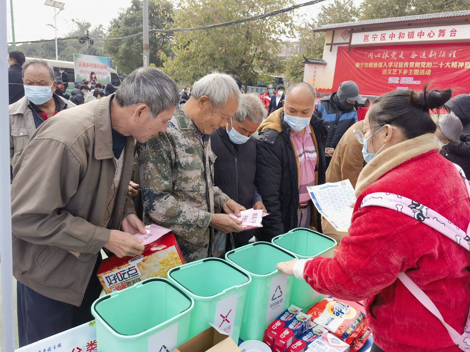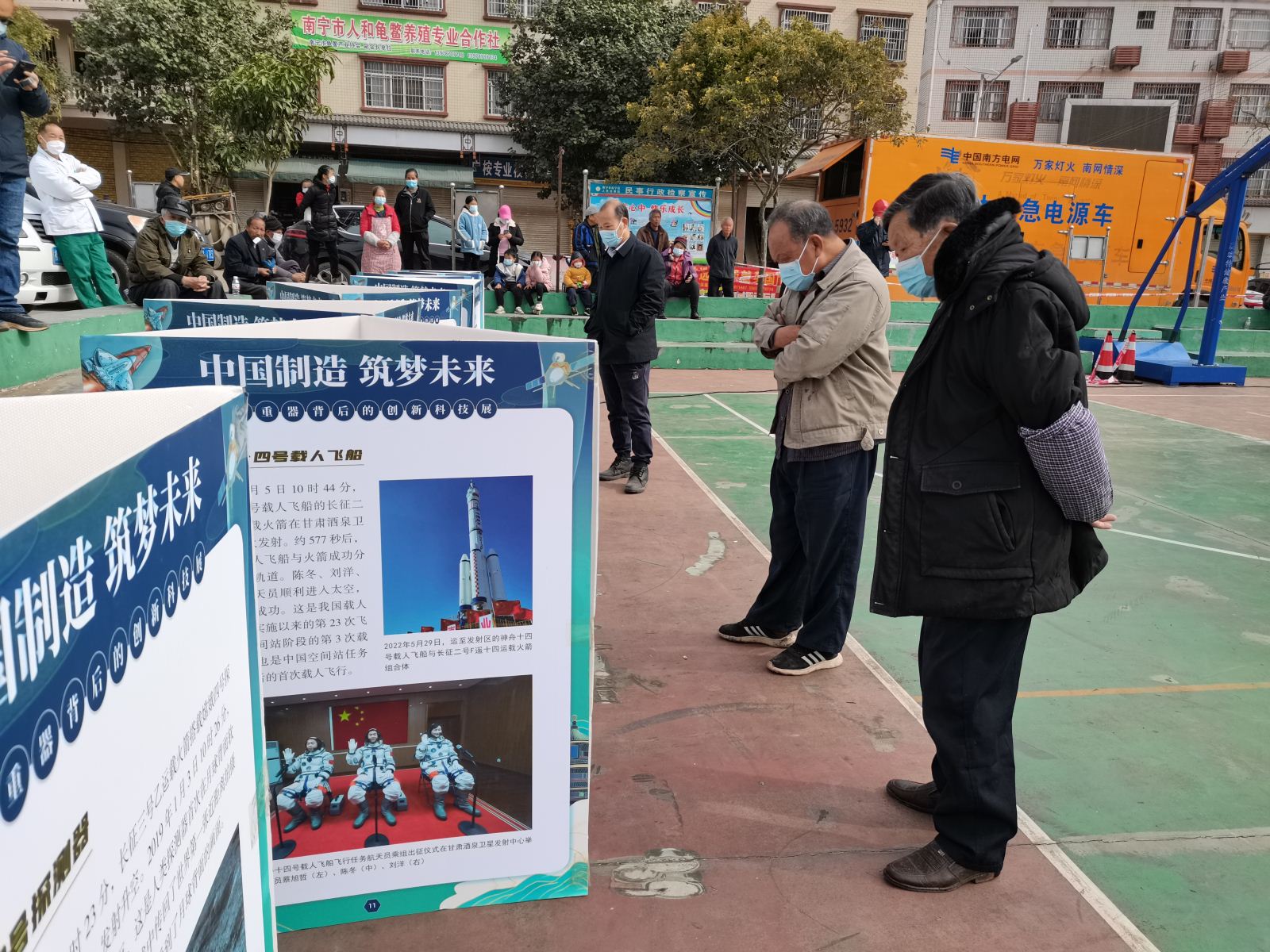 南宁市图书馆以学习贯彻落实党的二十大精神为主线,为乡镇基层群众送去汽车图书馆“流动书香·党史教育红色阅读”、“中国制造,筑梦未来”大国重器创新科技展览、“奋进新征程,建功新时代”学习党的二十大精神知识竞答、“书香绿城 美好生活”图书漂流、“垃圾分类 你我同行”垃圾分类实践挑战赛、公共图书馆服务宣传等6项内容丰富、形式多样的文化惠民服务和健康科普活动。汽车图书馆开进邕宁区中和镇,为基层群众带去党史教育、文学历史、医药养生、休闲旅游、少儿读物等多种类图书,方便基层群众零距离阅读;图书漂流活动发放文学、画报、科普、少儿类等期刊杂志共计200余册;在垃圾分类实践挑战赛台前,居民们自觉排起长队,踊跃参与有奖答题,市图书馆文化志愿服务队为居民们耐心细致地讲解,让大家了解垃圾分类常识,倡导文明健康绿色环保生活方式,牙膏、纸巾、香皂、洗衣粉等丰厚的生活类奖品深受居民群众喜爱。“中国制造,筑梦未来”大国重器创新科技展览,让广大群众深入了解我国牢固树立新发展理念,深入实施创新驱动发展战略,在各个领域铸就国之重器,实现了中华民族从站起来、富起来到强起来的历史性飞跃。