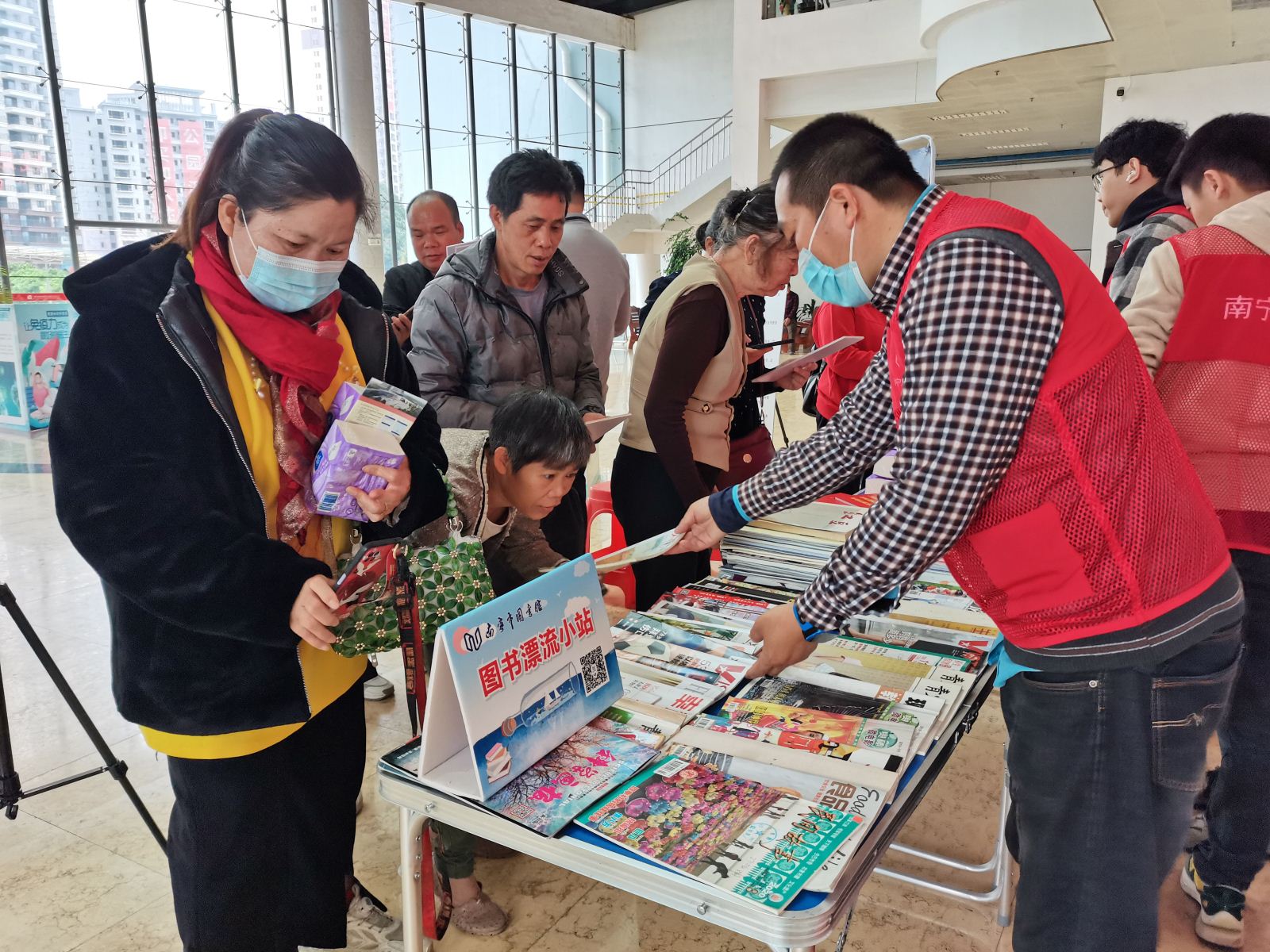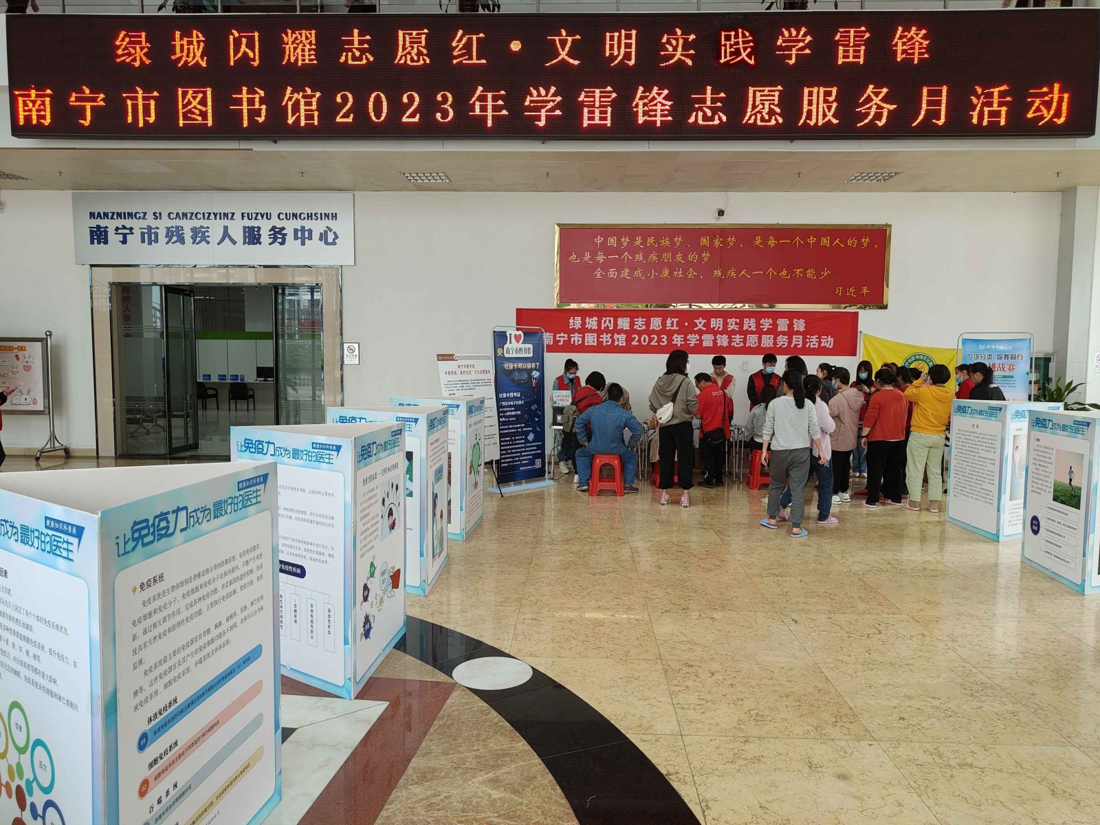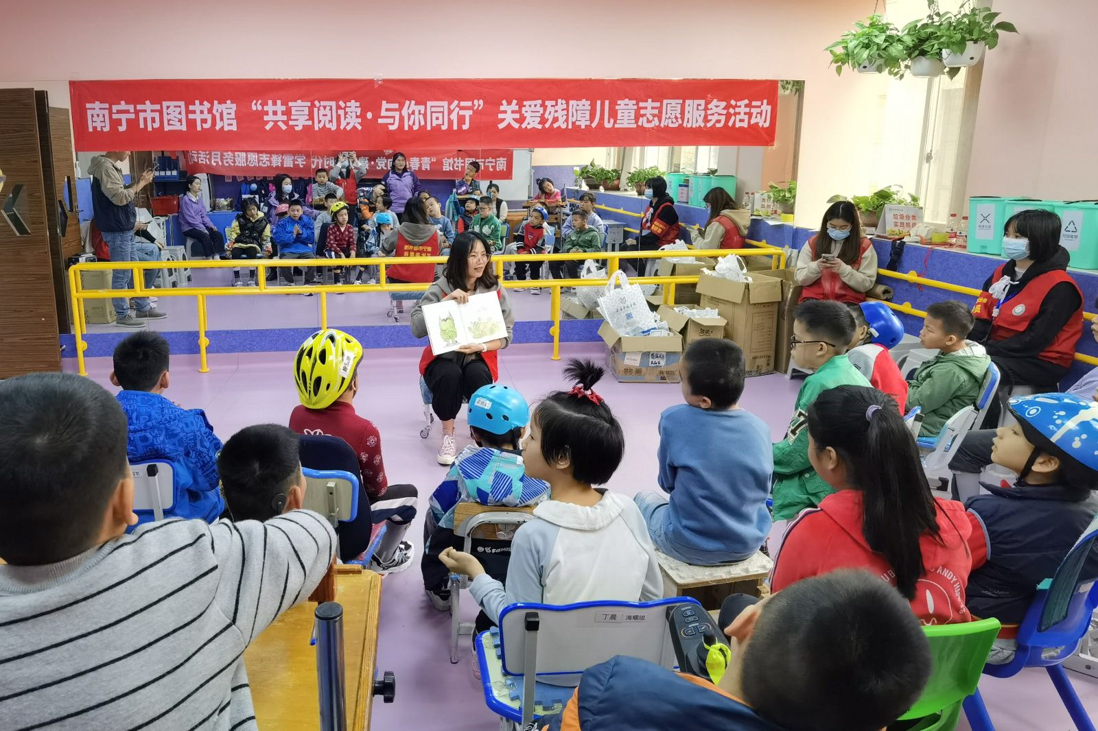 2023年3月3日上午,南宁市图书馆文化志愿服务队青年志愿者小分队走进南宁市残疾人活动中心开展“共享阅读·与你同行”关爱残障儿童志愿服务暨“流动书香进社区”志愿服务活动。文化志愿服务队将汽车图书馆开进了残疾人活动中心大院,为居住在活动中心周边的居民群众提供图书馆流动服务和文化服务。