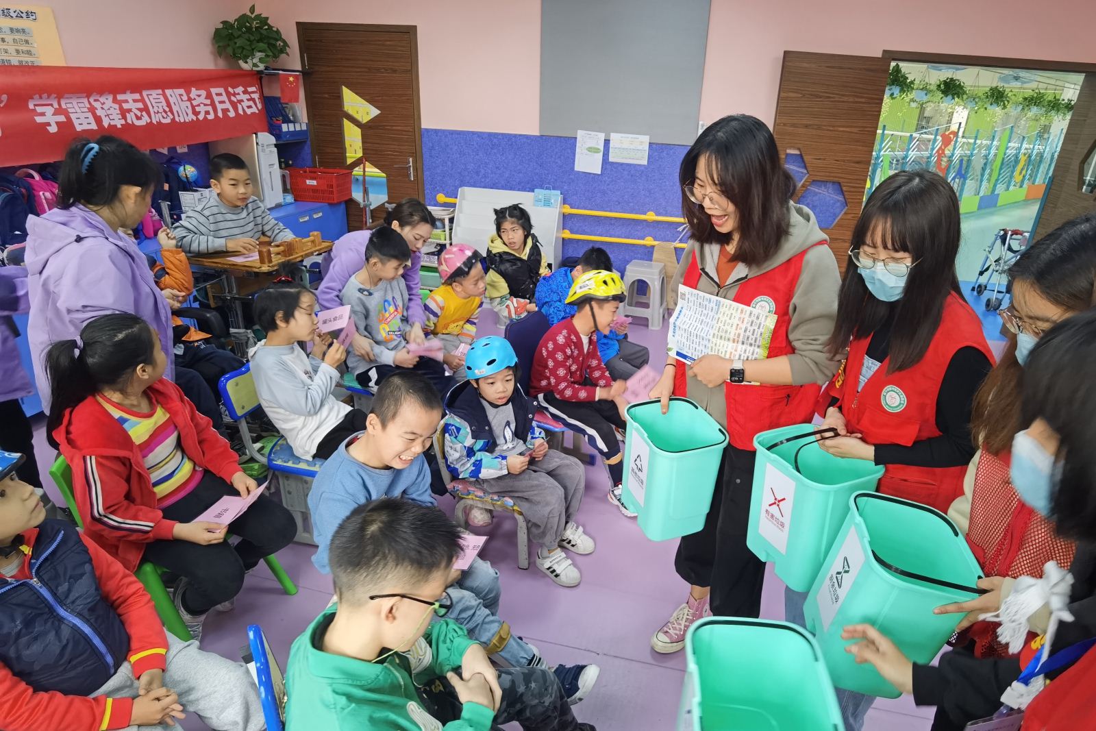 在市残疾人活动中心二楼,市图书馆少儿部的黄凤羽老师为广西云彩社会工作服务中心6至8岁的残障小朋友们精心准备了绘本故事——《我的情绪小怪兽》,她手中的彩色绘本和绘声绘色的演绎吸引了全场小读者的目光,他们积极参与互动,开心的笑容在他们的脸上绽放。接着青年志愿者们在简单介绍垃圾分类知识后,开展垃圾分类实践挑战赛活动,引导小朋友们将卡片投入正确的分类垃圾桶里,用趣味游戏的方式为小朋友科普了垃圾分类的相关知识,并为小朋友送上水彩笔、地球仪等文具奖品。