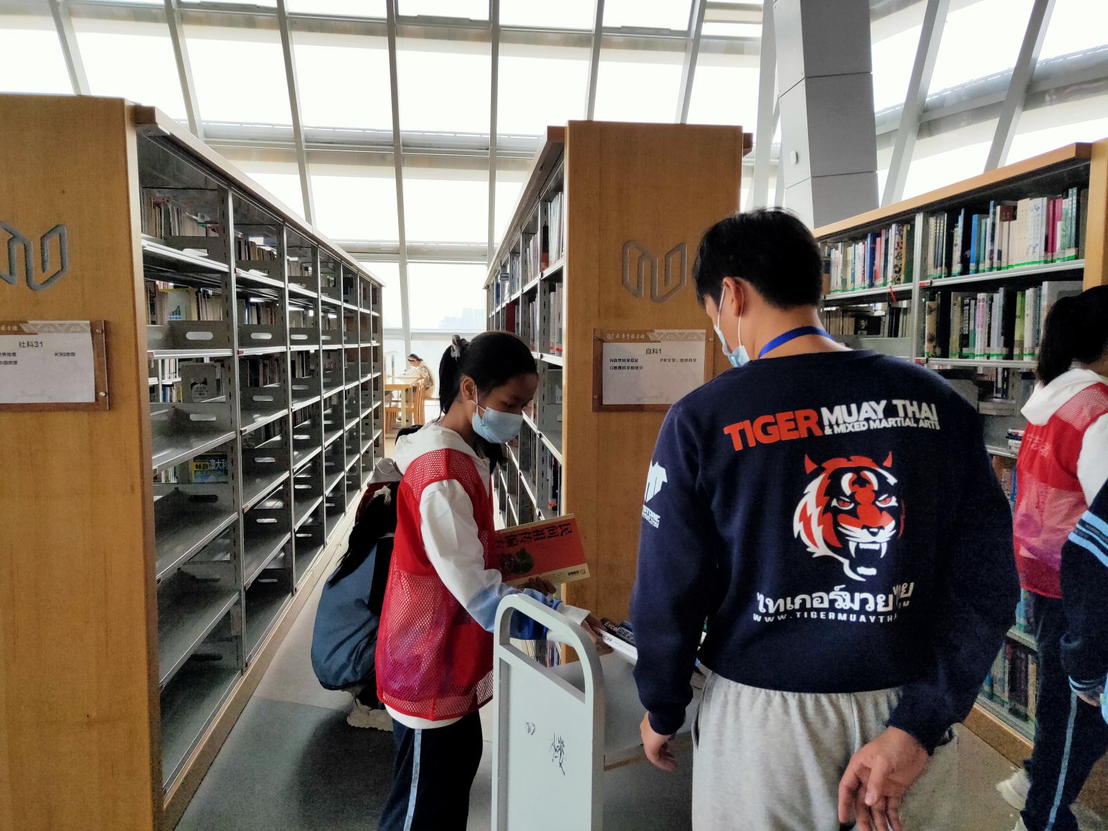 3月11日上午,南宁市第21中学的中学生志愿者们走进漓江书院(三祺广场店),市图书馆和漓江书院工作人员首先对志愿者们进行基础的志愿服务工作培训,从书籍封面、封底信息的认识学起,其次讲解图书如何归类、归架;没有明确信息无法归架的图书,应该临时放置在“迷路图书”处。志愿者们认真听讲,并迅速掌握基本的图书整理技巧,随后分散在各个主题书架前,进行图书整理、归架等志愿服务实践,方便前来寻找书籍的市民读者能够快速找到自己所需的书籍。