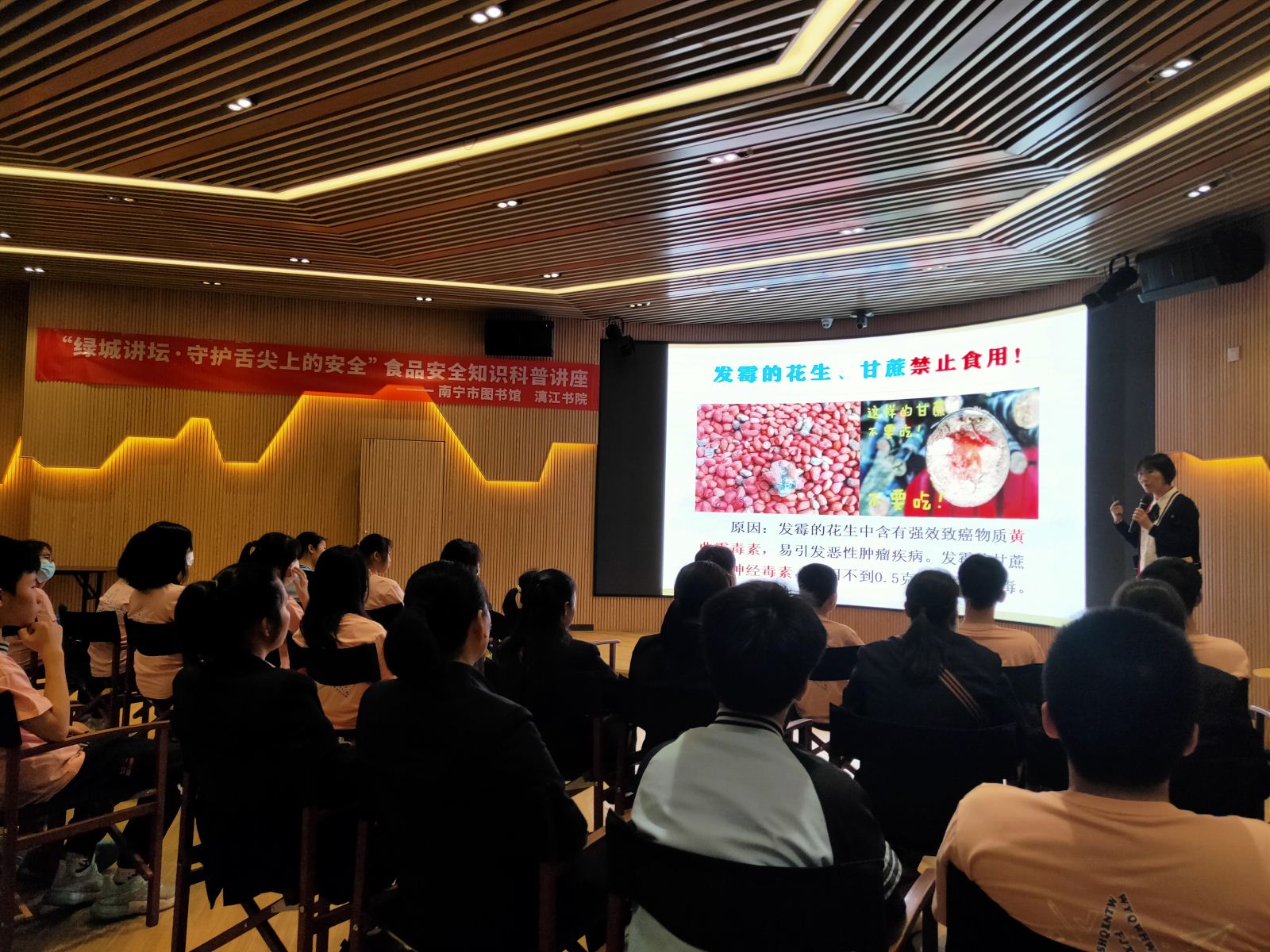 民以食为天,食以安为先,食品安全关系每个人的生命安全,关系千家万户的幸福安康,是关系人民群众生命健康的头等大事。在“3.15”国际消费者权益日到来之际,南宁市图书馆专题策划“绿城讲坛·守护舌尖上的安全”食品安全知识科普讲座,于2023年3月11日上午在漓江书院(三祺广场店)漓江讲堂举办,特邀南宁市青秀区市场监督管理局药械化股股长梁竹主讲,约50名市民读者聆听讲座。
