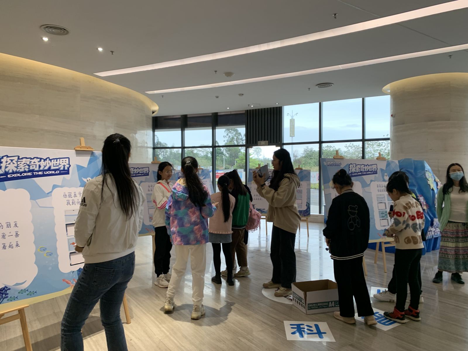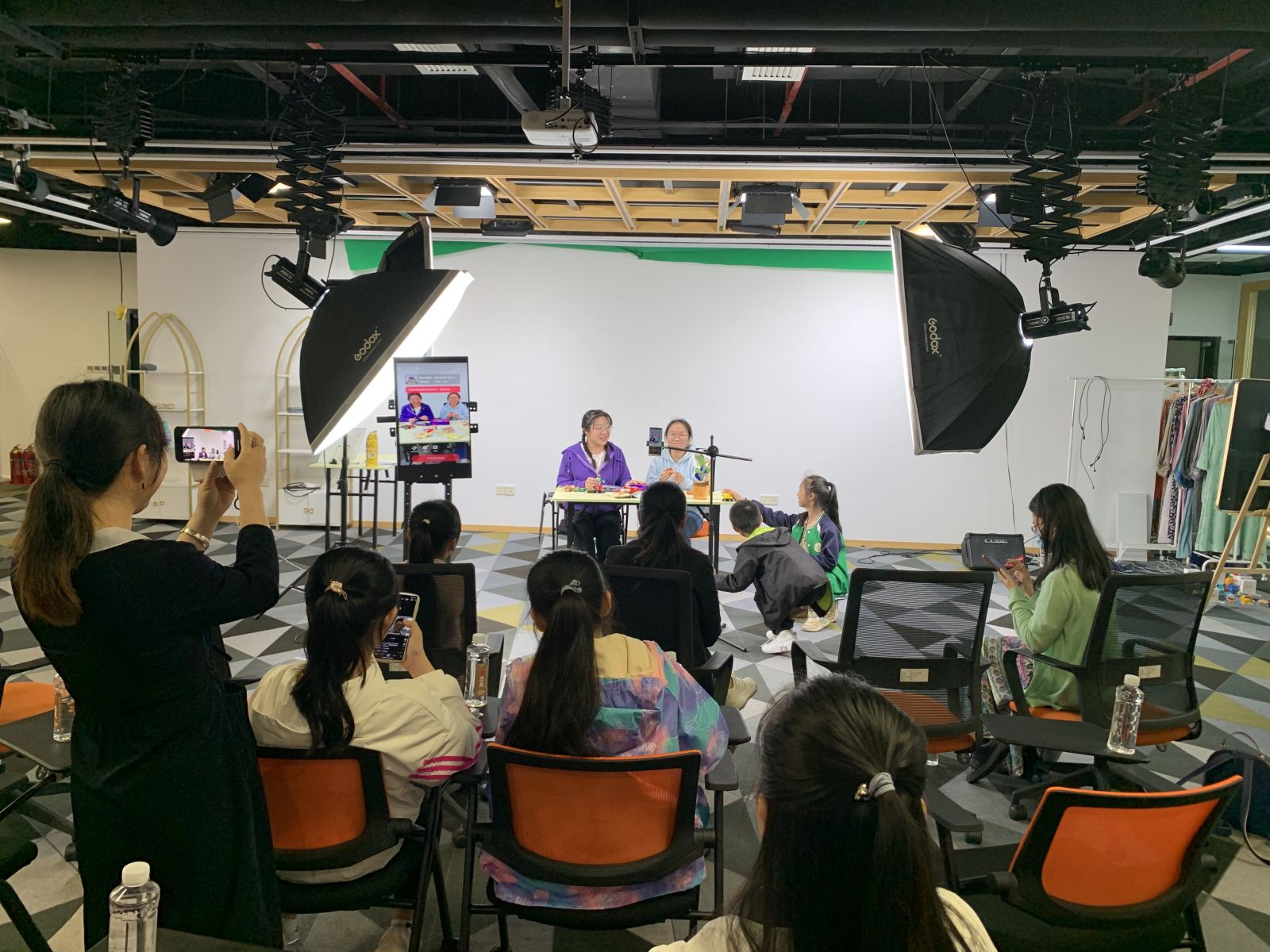 跟随着工作人员的步伐,读者们穿越以广西本土动画片《海豚帮帮号》为主题的文化科普长廊为开端,开启本次研学活动的旅程。在文化科普长廊里,读者们通过科普展板上的问答完成对应任务,共同拼凑海豚型长版拼图。随后,大家乘坐电梯来到位于广西新媒体中心18楼的广西华丽播文化传媒有限公司,华丽播公司唐嘉嘉老师为读者们介绍中国—东盟跨境主播孵化基地的产生背景及功能,并邀请中泰跨境电商主播现场示范中文、泰语直播形式,讲解电商直播流行趋势及主播技巧、直播话术等内容,让在场的读者们深入地了解主播的工作方式和电商直播流程。
