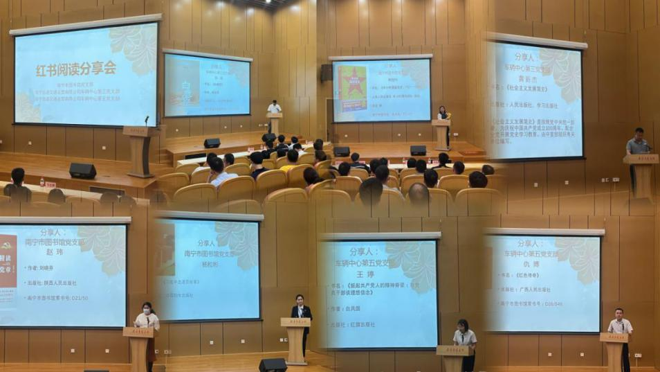 在南宁市图书馆小报告厅,联合举办了红色图书阅读分享会,三方选派代表分享推荐了《社会主义发展简史》《挺起共产党人的精神脊梁:与党员干部谈理想信念》《红色传奇》《半小时漫画党史:1921—1949》《精读党章》《习近平走进百姓家》等红色图书。积极响应习近平总书记“希望广大党员、干部带头读书学习、修身养志、增长才干”的号召。