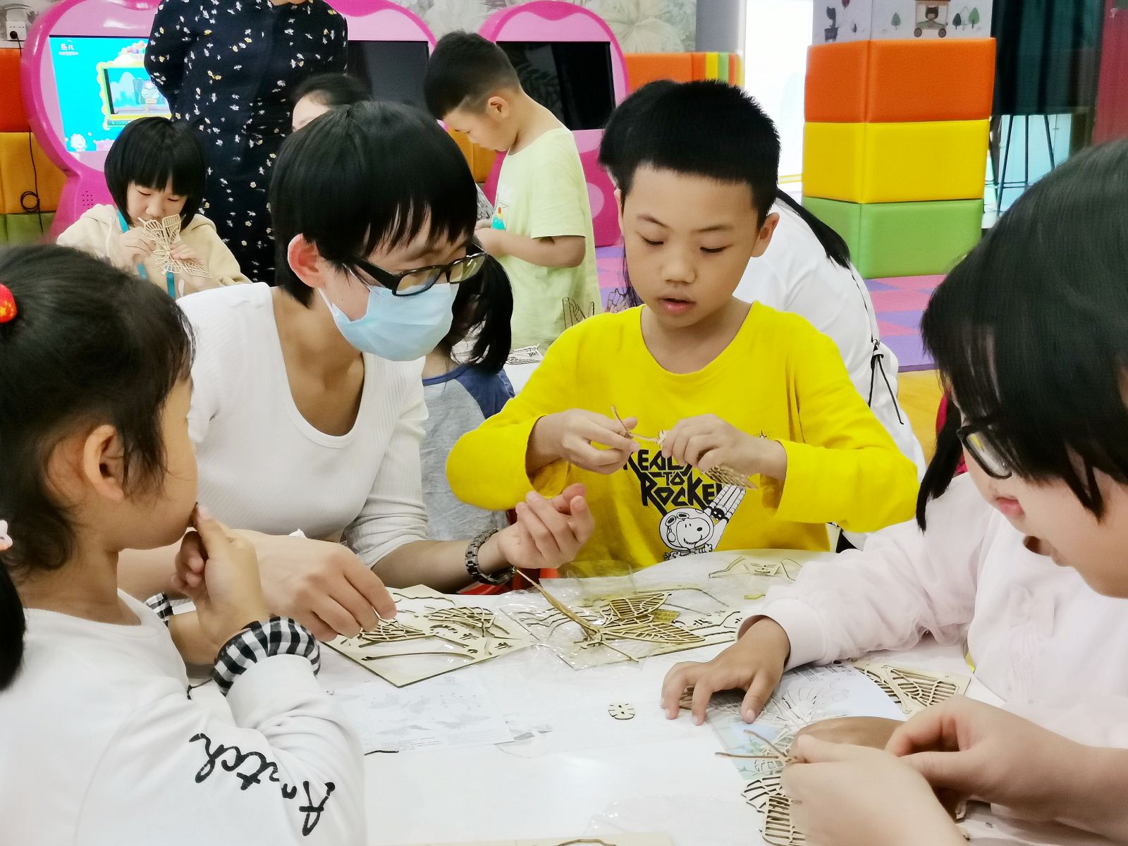 随后,图书馆的老师向大家推荐了相关馆藏童书方便小读者们深入了解自然科学知识并带领大家一起动手制作了木质蝴蝶模型。