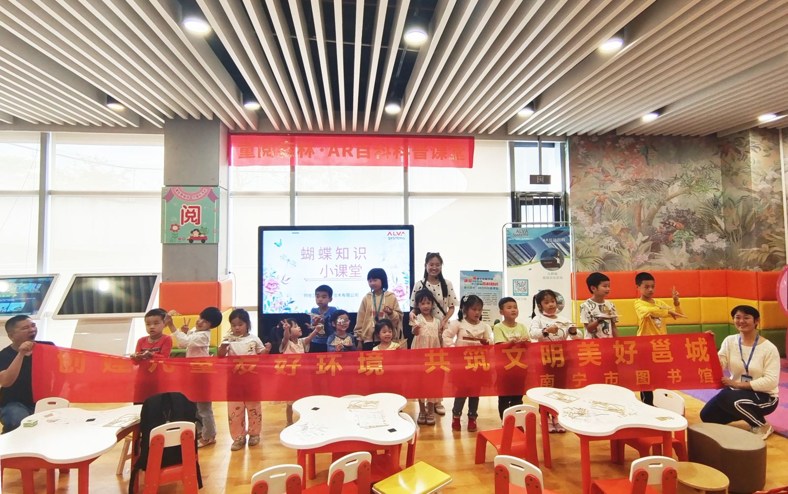 为积极推进儿童友好型图书馆建设,充分发挥公共图书馆的科普基地作用和阅读推广职能,2023年4月30日上午,南宁市图书馆举办了“童阅森林·AR百科科普课堂——蝴蝶百科”科普体验活动,共有30余人次参与。