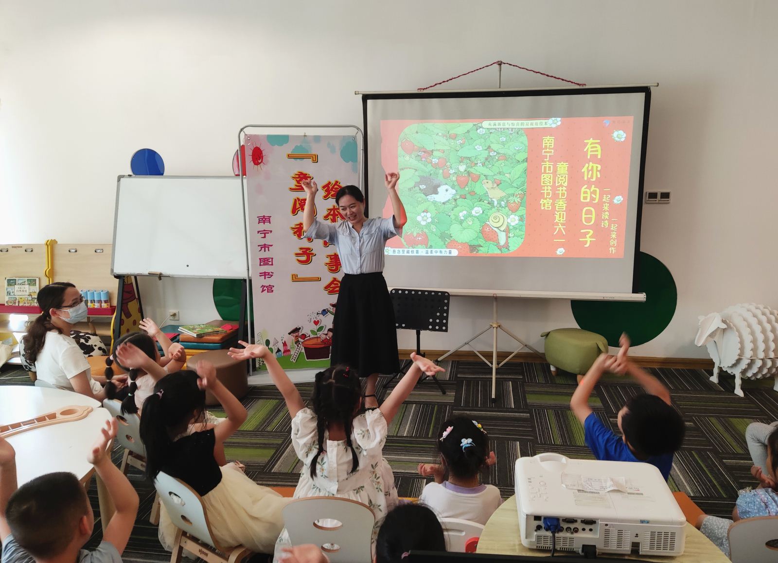 为积极推进儿童友好图书馆建设,认真履行阅读推广职责,帮助小读者家庭提升阅读兴趣,养成良好亲子共读习惯,以少儿阅读带动家庭阅读,促进全民阅读,助力儿童友好城市建设,在“六一国际儿童节”到来前夕, 5月28日下午南宁市图书馆邀请阅读推广人小米老师做客“童阅种子”绘本故事会,和16组亲子家庭共探诗意绘本《有你的日子》,开展“童阅书香迎六一”阅读推广活动。