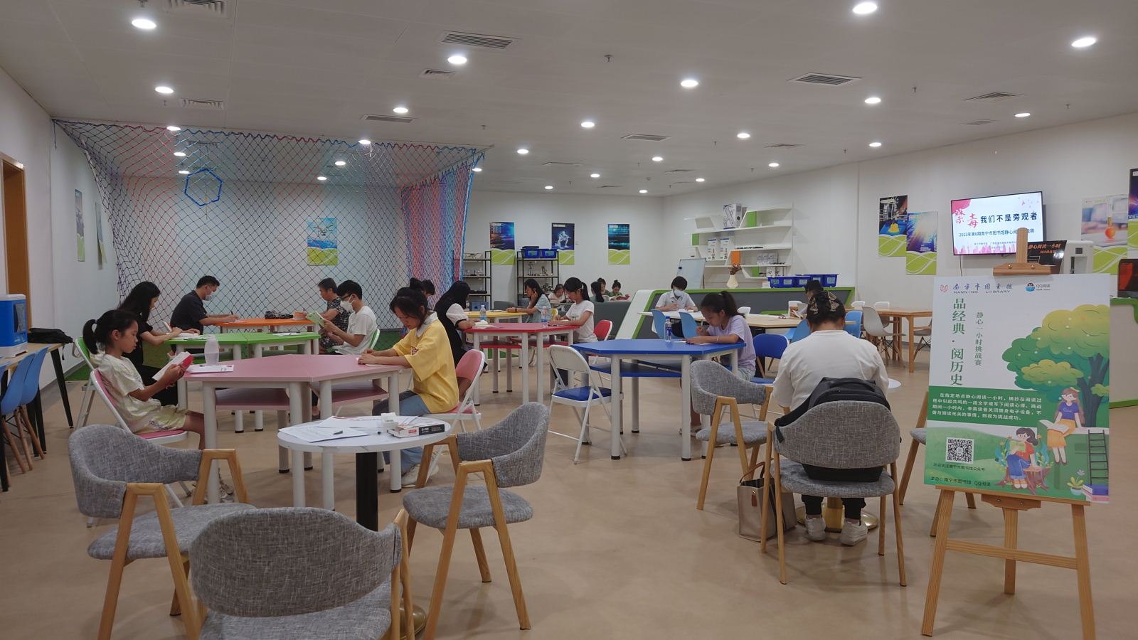 现在的生活节奏越来越快,很多人情不自禁感慨时间都去哪儿了?能够静下心来认真看书,潜心咀嚼知识的时间变得越来越有限。借着第33个国际禁毒日即将到来之契机,为进一步普及禁毒知识,增强读者的禁毒意识,切实提高读者识毒、防毒、拒毒能力,营造全民禁毒的良好氛围,倡导读者形成爱读书、善读书的良好习惯,6月17日上午,南宁市图书馆在一楼创客空间开展了主题为“禁毒,我们不是旁观者”的静心阅读一小时活动,呼吁广大读者加入到禁毒拒毒队伍中来。