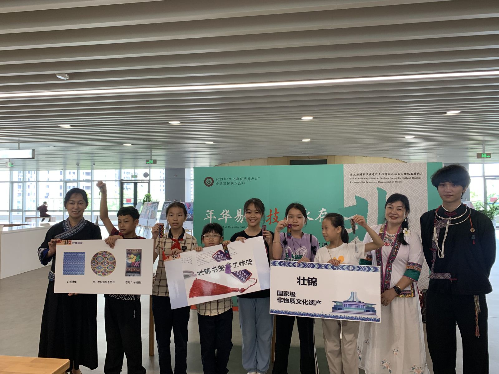 非物质文化遗产是我国宝贵的财富,传承和保护非遗文化是每个人的责任。南宁市图书馆一直致力于丰富读者的文化体验,推动非遗保护工作的开展,本次壮锦书签非遗手工体验活动,让更多的市民读者感受到壮乡文化的魅力,对非物质文化遗产有了更深入的认识,使传统文化焕发出新的活力。在7月16日上午,南宁市图书馆携“壮锦书签”活动参加了由青秀区图书馆主办的“阅·见世界——2023南宁国际读书分享会”,在会上与各国学生分享壮族文化,感受壮锦的艺术魅力。今后市图书馆将继续开展更多精彩纷呈的非遗活动,和广大市民读者共同传承中华民族的优秀传统文化。