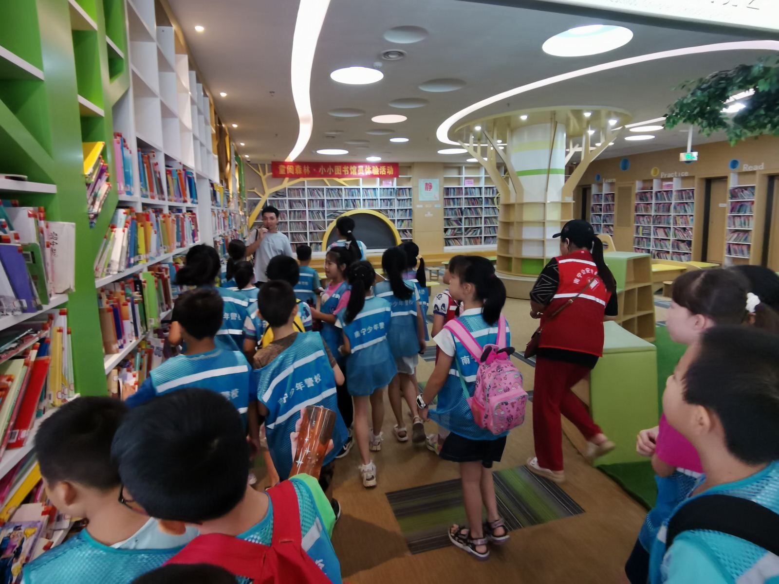 接着,大家来到南宁市图书馆最受欢迎、人气最旺的 “童阅森林”少儿阅览室。馆员老师给大家带来了一堂生动的图书馆信息素养课。孩子不仅学习了图书馆文明行为规范,了解了绘本和图书的分类方法,还学会了如何利用检索设备快速找到想要的书籍,并且还进行了“童阅森林·小小图书馆员”体验和垃圾分类体验。科学的布局、童趣温馨的装饰、丰富优质的馆藏资源和精心策划的读者活动让孩子们感到特别亲切和舒适。他们迫不及待地挑选自己喜爱的书籍仔细阅读起来,在知识的海洋中畅游。