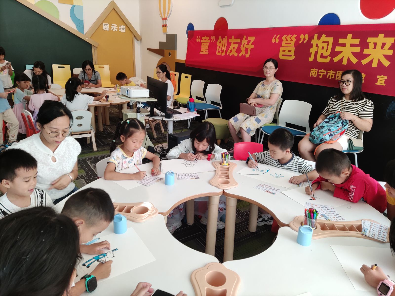 为积极推进儿童友好型图书馆建设,认真履行阅读推广职责,帮助小读者家庭提升阅读兴趣,养成良好亲子共读习惯,以少儿阅读带动家庭阅读,助力儿童友好城市建设,在8月12日下午南宁市图书馆邀请阅读推广人蔷薇老师做客“童阅种子”绘本故事会,和近16组亲子家庭共享《神探狗狗》系列经典童书。