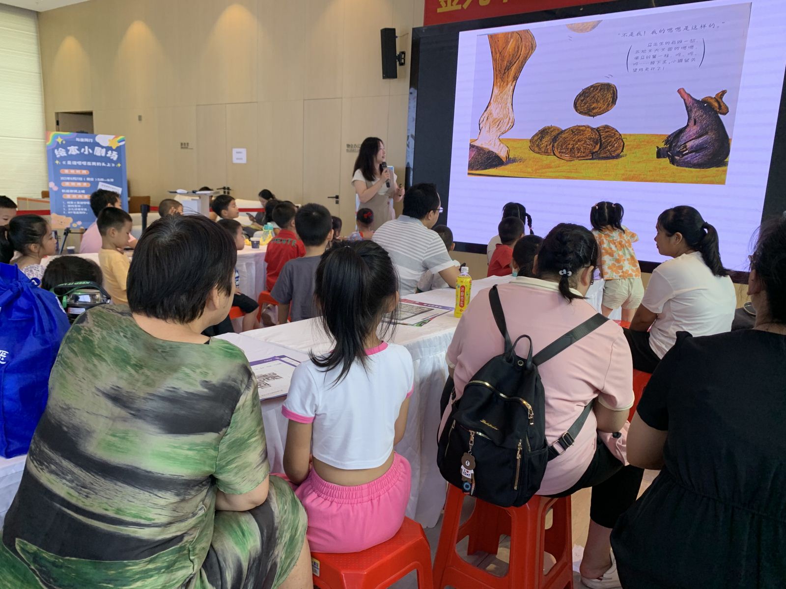 阅读兴趣、阅读习惯与阅读能力的形成得益于儿童时期养成的良好阅读习惯。2023年8月26、27日下午,南宁市图书馆应轨道御澜上城项目邀请,在项目接待中心举办了两场“与童同行·绘本小剧场”阅读推广活动。活动通过“绘本导读+拓展游戏”方式,精选世界经典绘本图书进行导读,帮助儿童用户群体深入认识和了解图书馆,并积极呵护和引导4至10岁儿童开展阅读行为,让其从小培养良好阅读习惯,在好书的熏陶下茁壮成长。