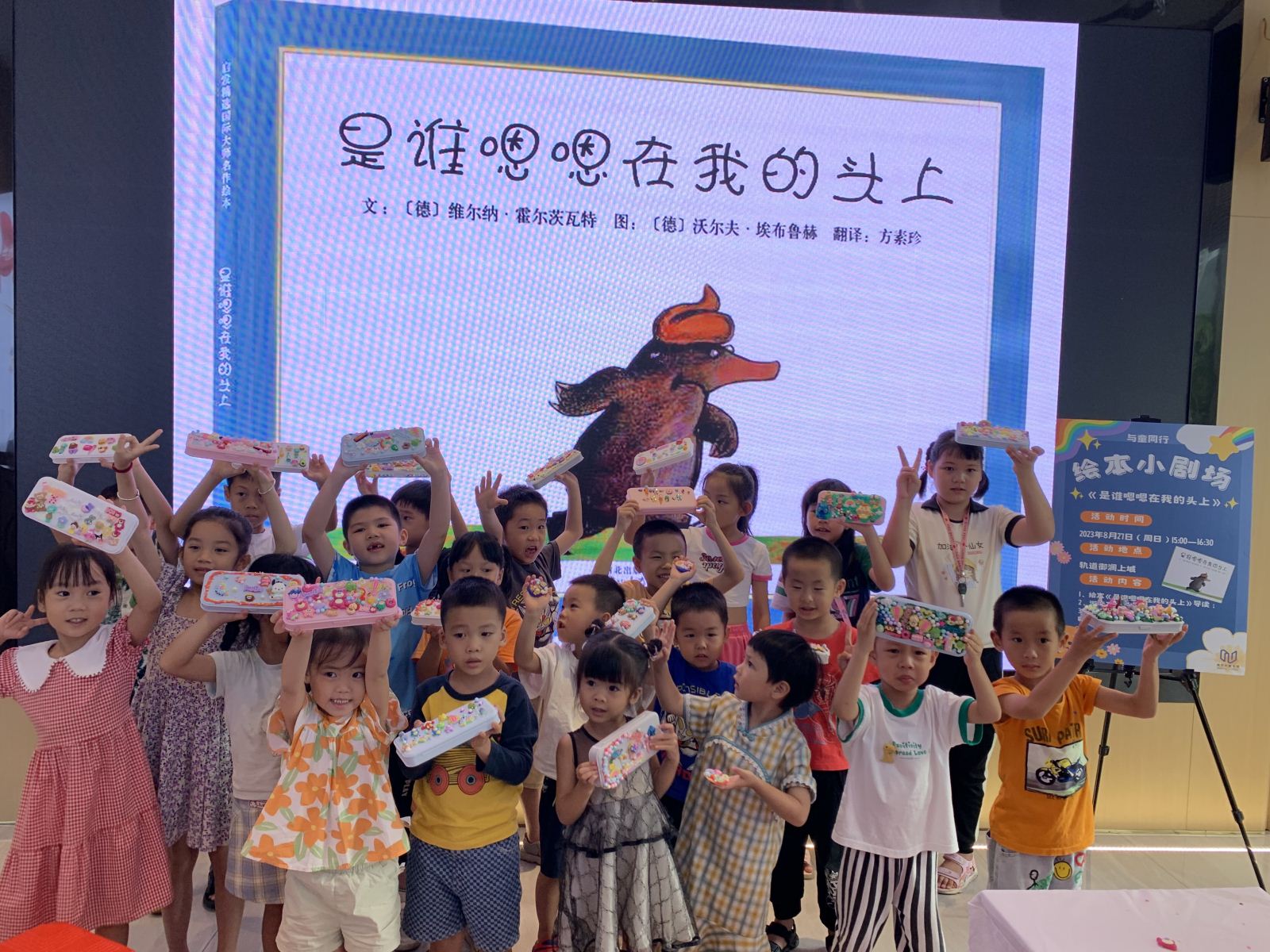 活动邀请到了专业少儿阅读推广人赵璐老师为孩子们分别带来经典绘本《我的情绪小怪兽》和《是谁嗯嗯在我的头上》。赵老师在《我的情绪小怪兽》绘本拓展游戏中用与绘本对应红、绿、黄、黑等颜色的卡纸与孩子们互动,让孩子们充分发挥想象力画出自己的“情绪”,帮助他们认识自己的情绪,并学习如何控制自己的情绪。在《是谁嗯嗯在我的头上》绘本拓展游戏中,赵老师则通过黏土手工游戏,巩固孩子们对动物粪便的认知能力,同时让孩子们正确对待生理现象,正确、卫生的处理相关情形。绘本讲解结束后,轨道御澜上城项目还准备了“开学笔盒DIY”手工制作环节,通过DIY制作调动孩子们的积极性,也为即将开学的孩子们送上一份祝福。此外,项目还为参加活动的读者朋友们准备了精美的下午茶点。