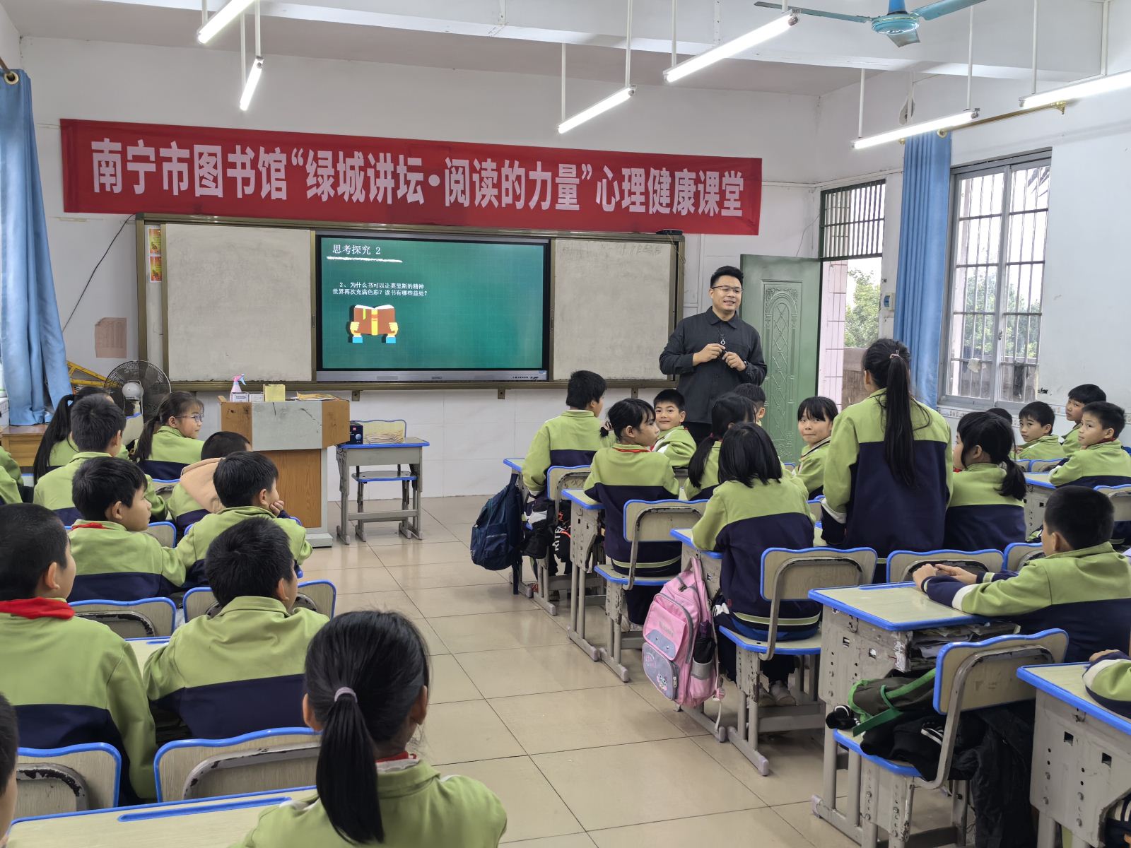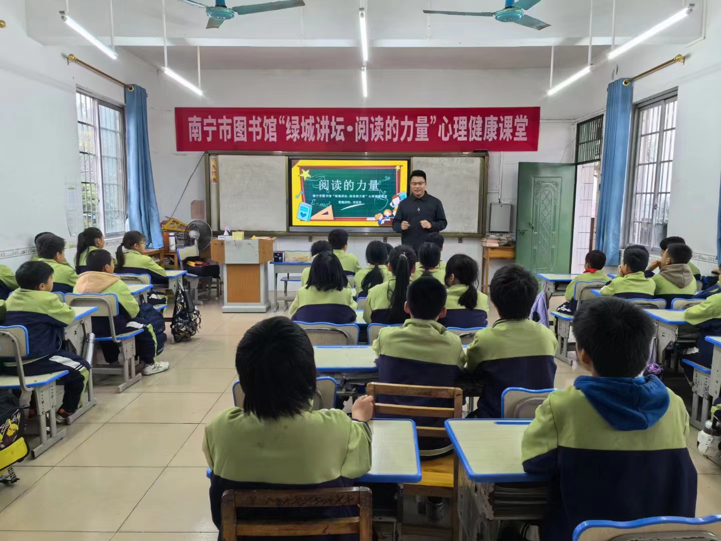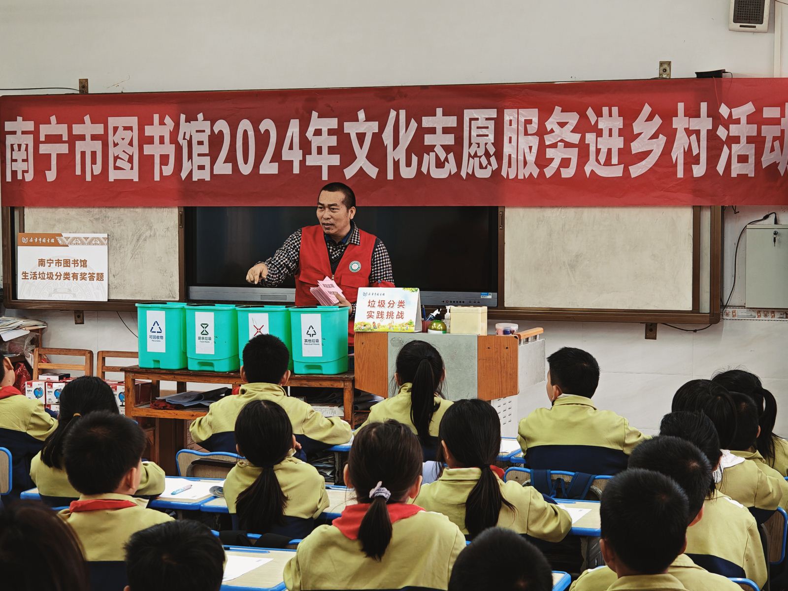 2024年1月12日,在新春佳节到来之前,南宁市图书馆文化志愿服务队前往横州市百合镇同菜村委小学开展文化志愿服务进乡村活动。本次文化志愿活动以分级服务的方式,为同菜村委小学的同学们开展垃圾分类科普知识有奖问答和“阅读的力量”心理健康课堂,为推动乡村科学文化普及和提升村民科学文化素质贡献文化志愿者的力量。