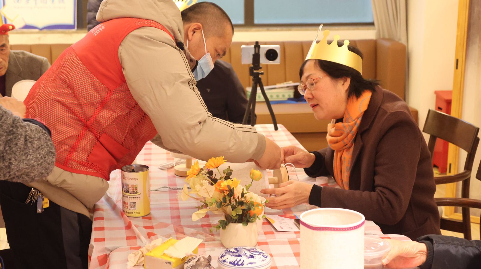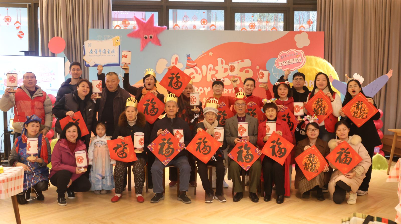 在华润悦年华颐养社区,市图文化志愿服务队开展第十六期“书香绿城·美好生活”文化志愿服务进社区活动,馆员志愿者们为社区正值1月生日的高龄老人集体庆祝生日并送上春节节日祝福。活动邀请壮族非遗文化讲师清和老师及其团队与高龄老人共同制作节日剪纸花灯,用指尖传承文化之美,体验非遗剪纸艺术的魅力,感受春节浓浓的年味儿。