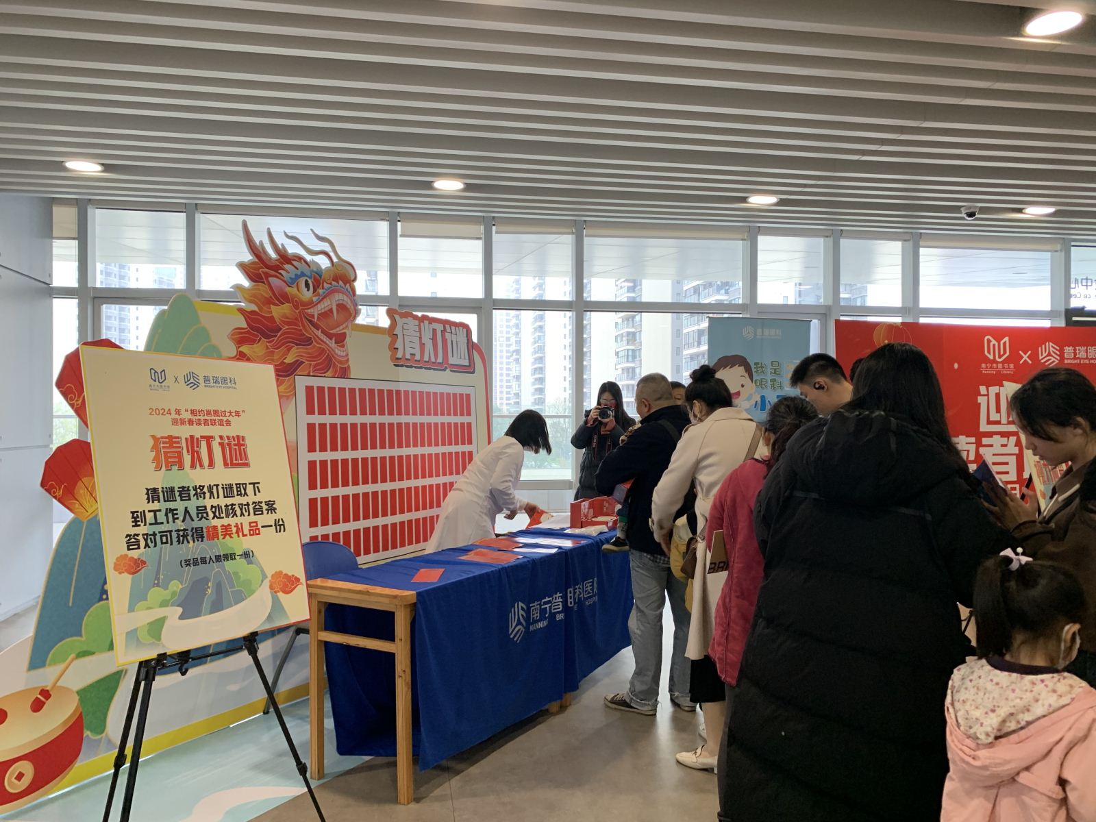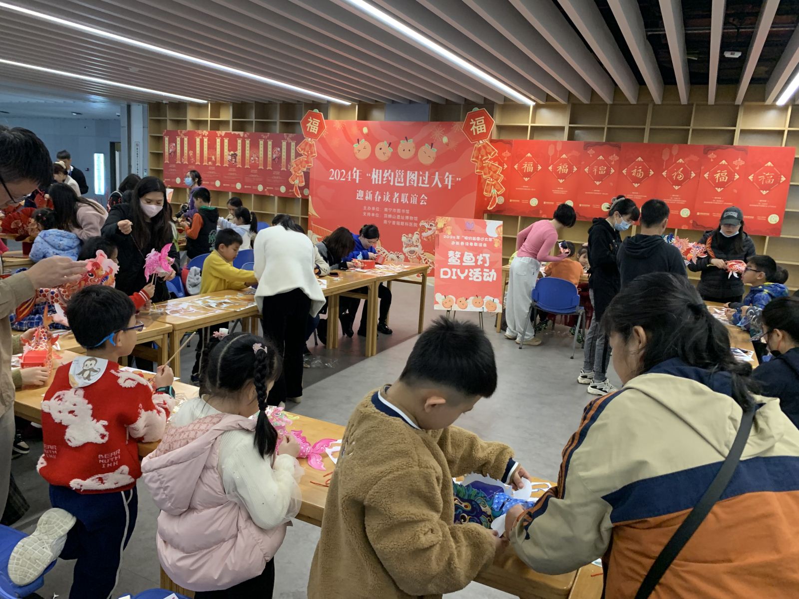 南宁市图书馆一年一度“相约邕图过大年”读者联谊会活动于2024年2月4日上午热闹开启。为喜迎2024年农历新年,让广大市民读者度过一个有意义的传统佳节,进一步了解中华优秀传统文化的深刻内涵,感受中华文明的博大精深,同时延续往年传统,延伸“我们的节日”主题活动品牌效应,今年的读者联谊会共推出13项活动。内容丰富、形式多样的联谊会吸引了众多市民读者参与其中。