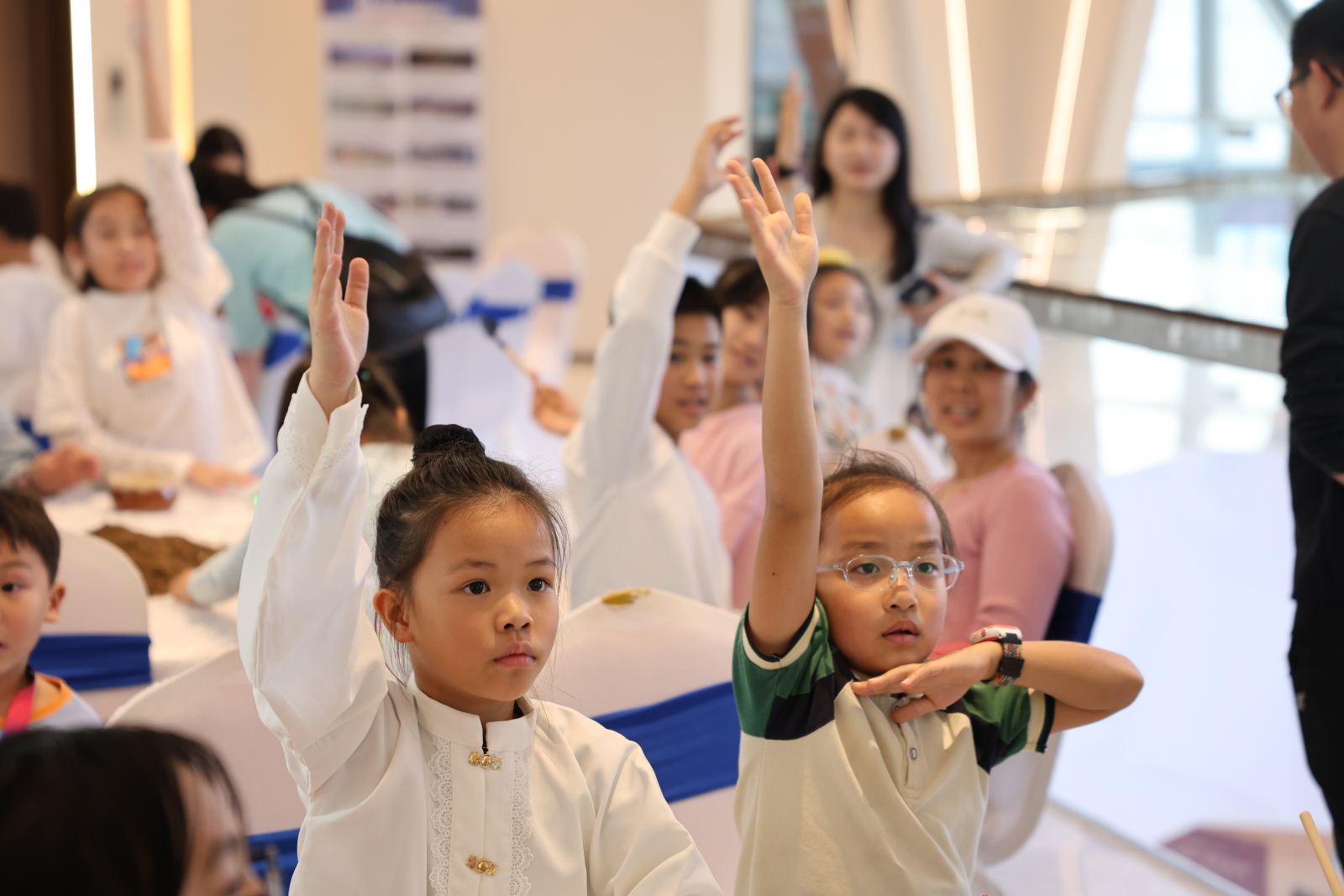本次活动共设置“有奖问答”与“亲子手工”两个环节。首先,由南宁市图书馆文化志愿服务队队长陈思佳老师通过植树节及消费者权益日相关知识互动问答的形式,向大家普及植树节及消费者权益日的由来和意义。现场参与活动的市民读者十分活跃,互动热情持续高涨,每次老师抛出问题后,还没开始倒计时抢答,小读者们都已经跃跃欲试举起双手。