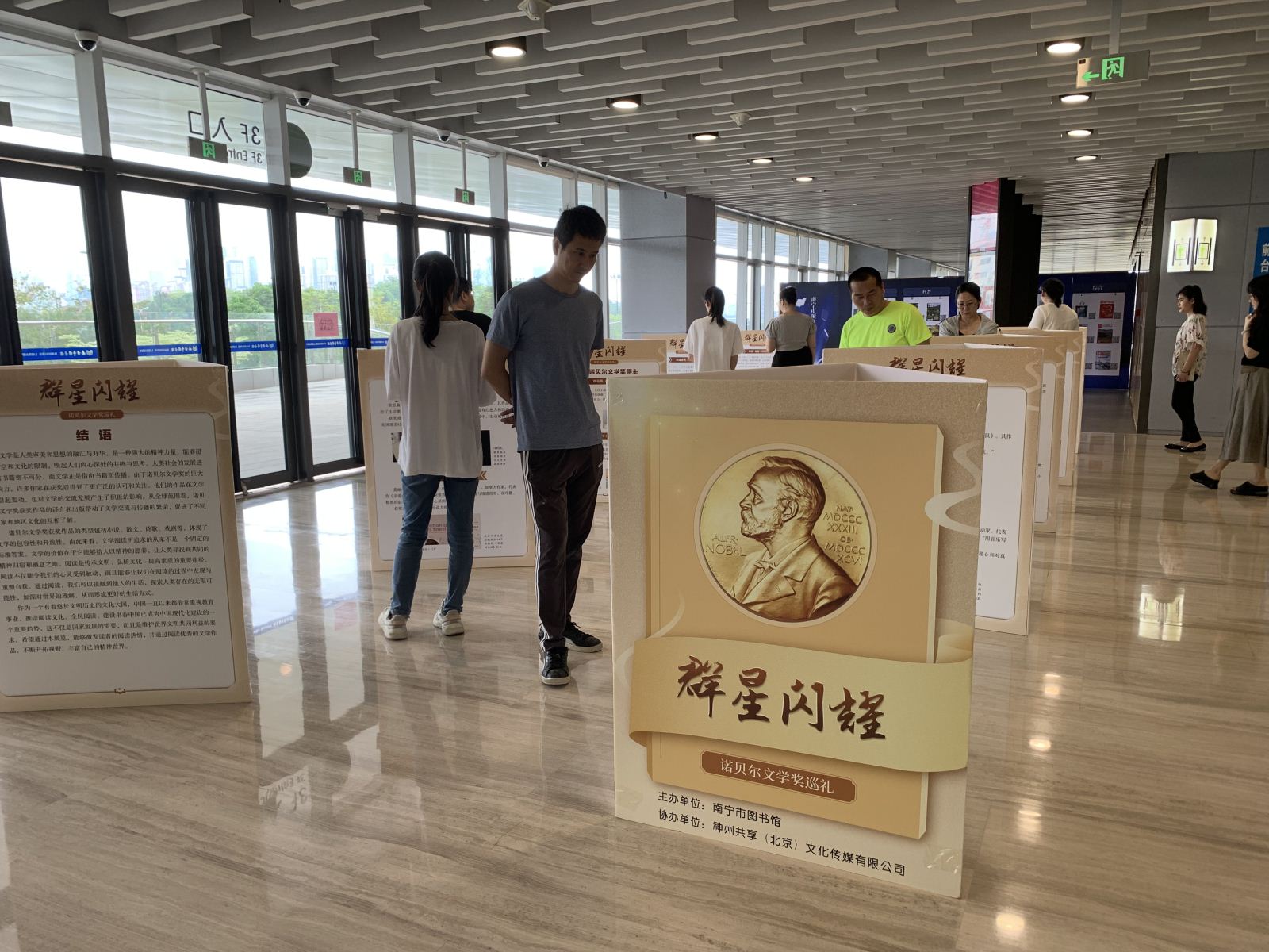 在2024年“4.23”世界读书日和公共图书馆服务宣传周期间(4月22日至28日) ,南宁市图书馆绿城展廊特别策划推出“群星闪耀一诺贝尔文学奖巡礼”展览,向广大读者介绍截至2023年获得诺贝尔文学奖的著名作家及其经典作品,与文学大师们进行一次精神碰撞。一部部博大厚重、力透纸背的作品是大师们留给世界的精神文化瑰宝,他们用文字诉说时代意义,用智慧启迪人类进步,用灵魂种植了一座座不朽的文学花园,供世人捧读回味。