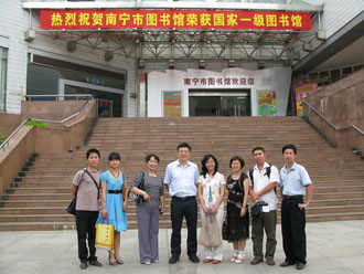 上午10点30分,柳州市城中区考察组先到达南宁市图书馆,应客人邀请,南宁市图书馆副馆长李霞、办公室廖集光主任向考察组介绍了南宁市城区图书馆建设概况,随后,吕部长一行参观了南宁市图书馆各服务窗口。中午时分,李霞副馆长、廖集光主任陪同考察组成员参观了我市的兴宁区图书馆、青秀区图书馆以及南宁市少年儿童图书馆。考察组成员所到之处,均得到同仁们的热情接待,双方针对目前城区图书馆建设和发展中存在的问题交换的看法。柳州城中区文体局局长、城中区图书馆馆长周小燕表示,把这次学习到南宁市城区馆建设经验和建设中得到的教训带回去,争取把城中区图书馆办出效益、办出特色。在考察中,柳州市城中区图书馆的同仁们,还专门考察了各馆的馆舍布置、规章制度的张贴等,用于新馆的布置。