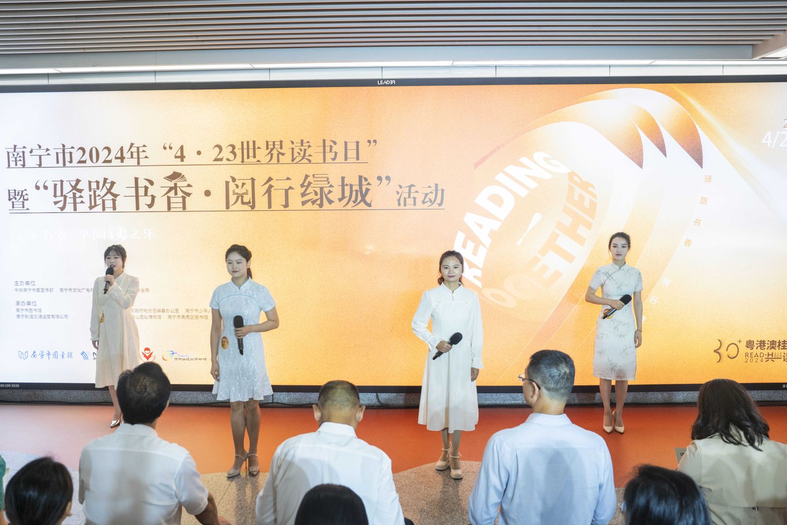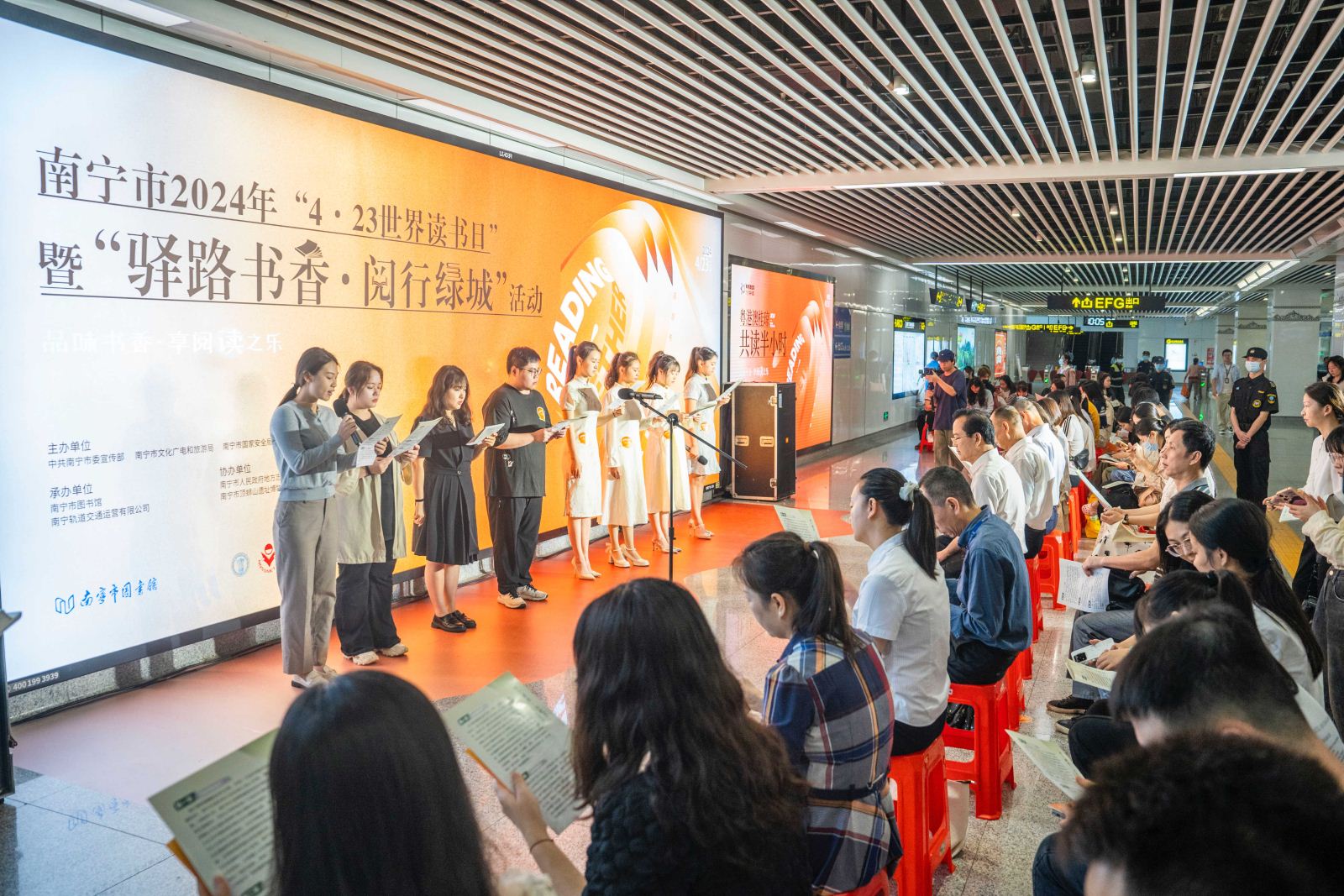 4月23日上午,南宁市2024年“4·23世界读书日”暨“驿路书香·阅行绿城”活动启动仪式在金湖广场地铁站顺利开展。