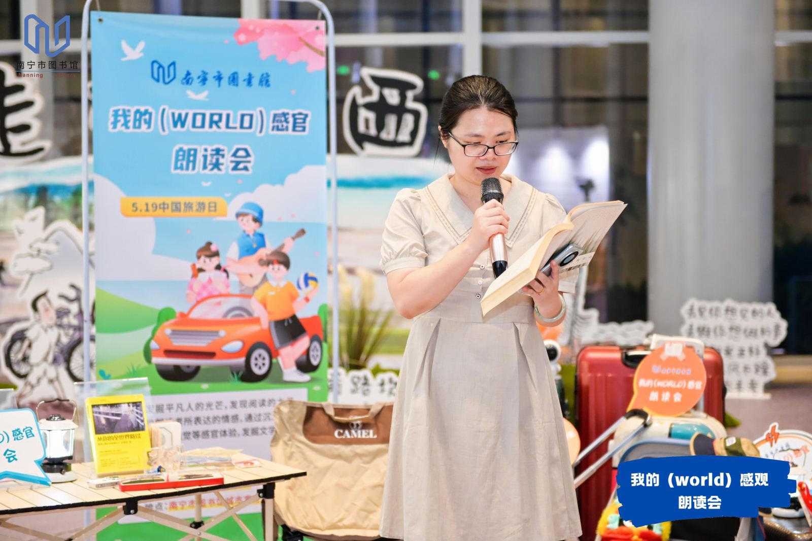 5月25日晚上,众多读者相聚在南宁市图书馆城市客厅,参加我的(WORLD)感官·朗读会第一期活动,齐声诵读“旅途”主题文学作品,在文学与远方共同营造的氛围中,体验朗读的魅力与文字的力量。